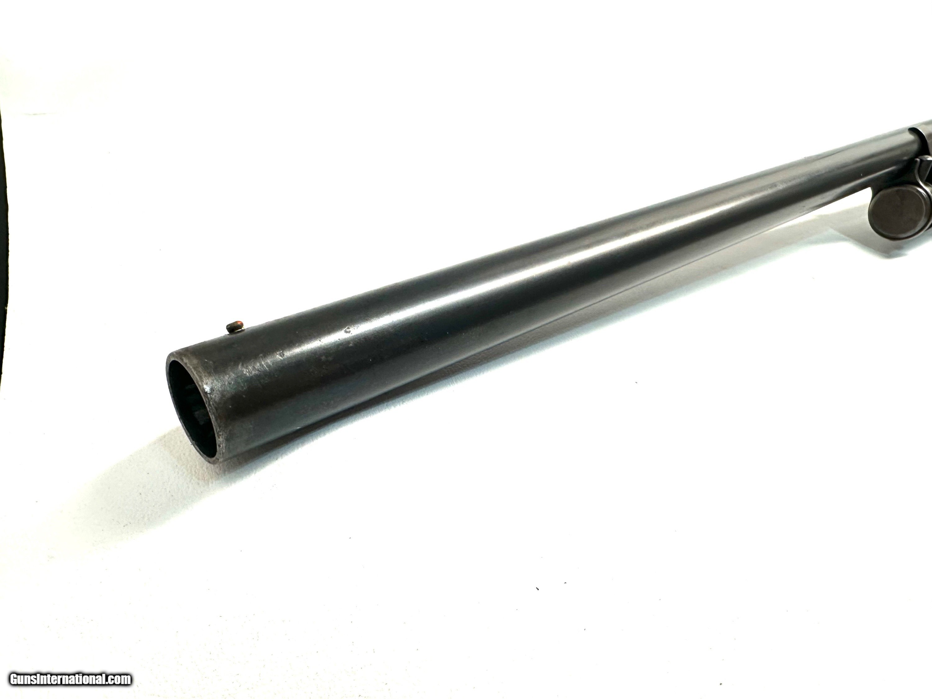 Description: Early 1918 Manufactured Winchester Model 1912 (Model 12) Pump shotgun. This is the quick take down model. Good Bore Full Choke, THe toes of the stock has been repaired and brass pinned as well as a replacement reproduction butt plate fitted to the gun. The missing magazine plug screw in the picture is on order and it will ship fully complete and operational. Flat 45.00 shipping fee SOLD Manufacturer: Winchester Model: 1912 Serial Number: 163294 Barrel Length: 30 Condition: Fair Bore Condition: Good Action: Pump Manufacture Date: 1918 Item Location: Buxton Maine |