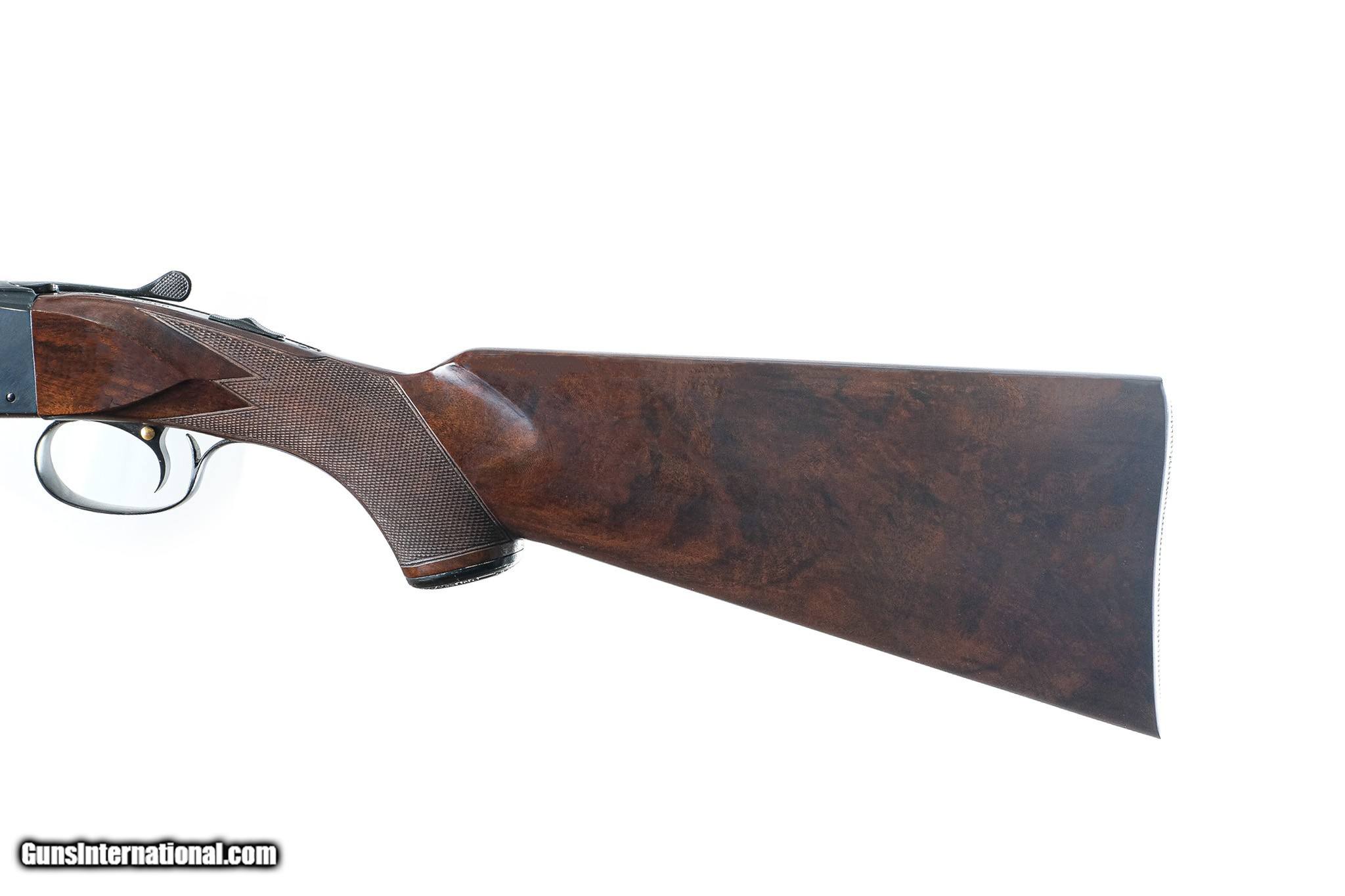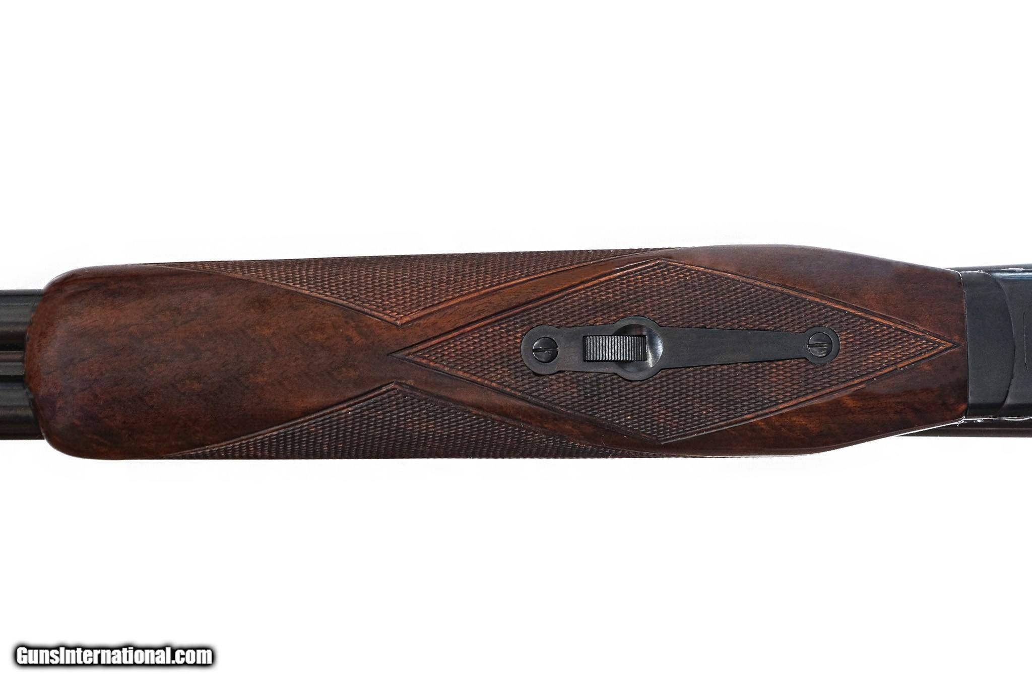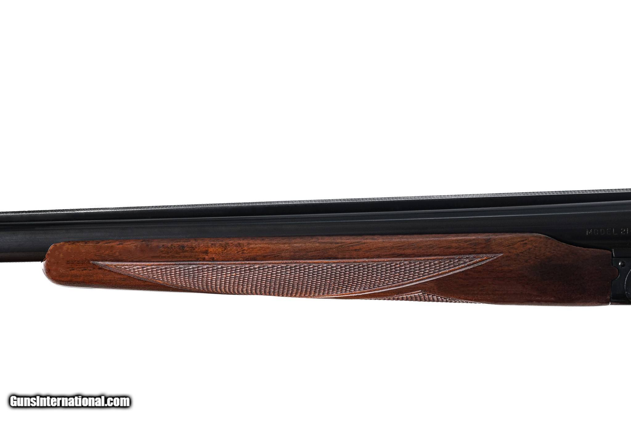 Description: Winchester - Model 21, SxS, 20ga. 28" Barrels Choked M/F. Matte rib, single selective trigger, a superior piece of even perfect feather crotch, Black American Walnut, capped pistol grip, checkered butt, 3point checking, diamond style checkering on forend, virtually an unfired gun, 150’s production, red Bradley front sight, automatic safety. 100%-barrel blue, wood finish and case color. Just a perfect gun in all aspects! And comes with a lifetime warranty! Inv: 81255 6 lbs. 12 oz. 14 ¼" x 1 3/8" x 2 ¼" $9,250.00 CT Shotgun/Galazan buys sells and trades the world’s largest inventory on Model 21 shotguns. we are experts in all phases of buying, selling, and repairing as well as restoration of these very complex guns we have handled more Model 21 in all regards than all other companies put together. we have bought sold and manufactured most of the Grand Royal and Grand American grade guns and we understand them intimately. In 1994, Galazan/CT Shotgun purchased the Winchester Custom Shop from U.S. Repeating Arms Company and at that time designated the sole manufacturer and authorized repair for the Model 21, we purchased all of the inventory machining tooling and highly regarded trade secrets in regards to manufacturing and repairing maintaining these intricate shotguns. CT Shotgun/Galazan continues to perform the only authorized factory service on all these fine guns if you are interested in purchasing repairing or altering a Model 21 we should be your sole source when it comes to a Model 21 every gun we sell is serviced and inspected, comes with our lifetime warranty. CT/Galazan also has all assorted accessories, original style cases and recoil pads. WHY BUY A MODEL 21? 1. No one knows the gun better than us. 2. We are the only authorized repair facility for Model 21s. 3. We build the new Winchester Model 21. 4. We build the CSMC Model 21. 5. Every gun receives a safety inspection before sold to a customer. 6. Most guns are detailed, cleaned & lubricated and any parts charged to make them as factory new. 7. Fair honesty, reputable dealing for over 20 years. 8. Very competitive pricing. If you compare our guns to any other gun on the market, you will find in most instance that our guns are the best value. The best are brought up to factory specs which, in some cases, can be more than the gun. 9. The largest collection of Model 21s in the world. 10. With any Model 21 SxS you buy from us; we offer a lifetime mechanical warranty. SOLD |