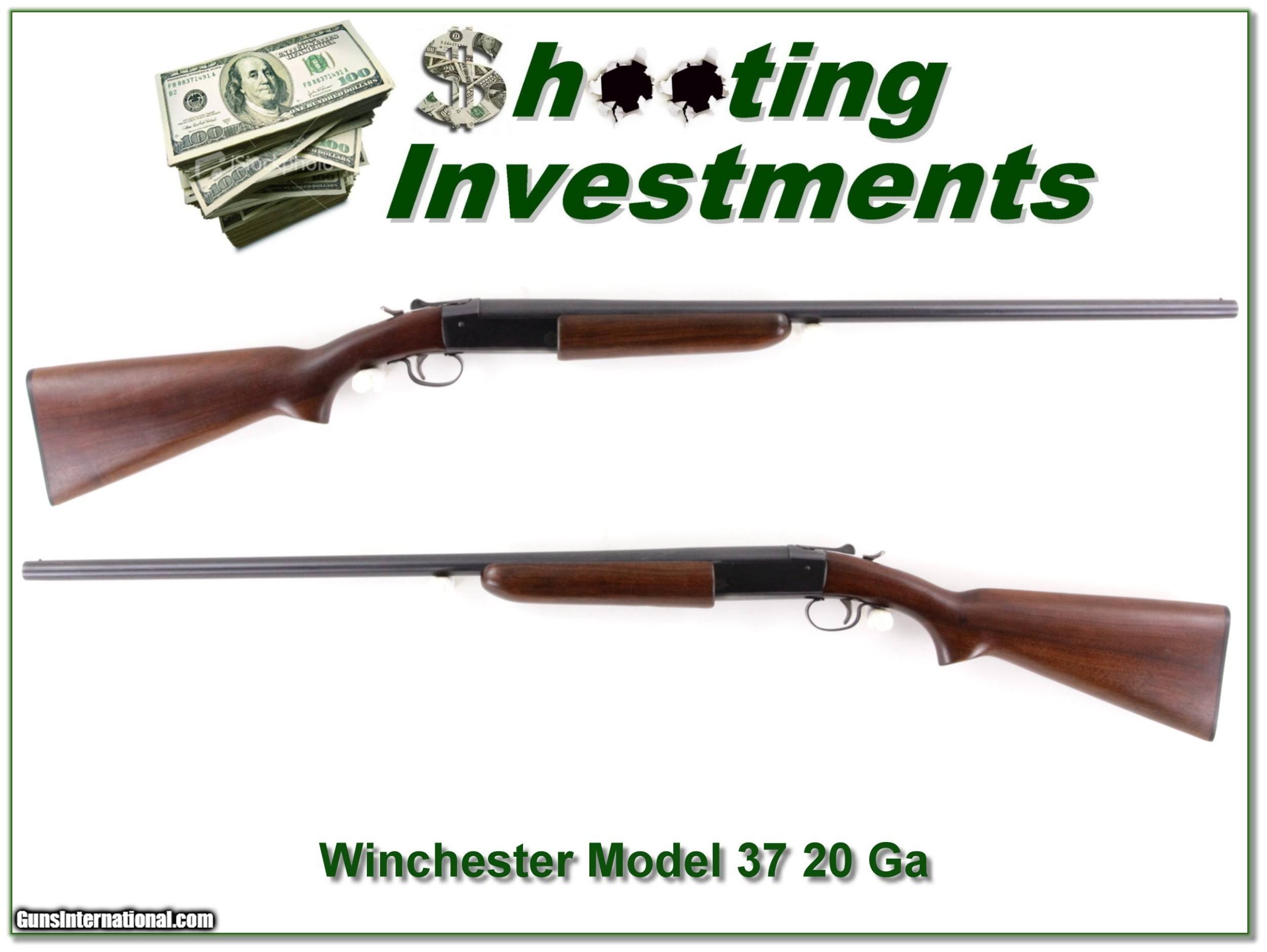 Description: Collectors, this is an excellent condition Winchester Model 37 20 Gauge. It has a 28in full choked barrel. Both blue and wood are excellent showing only the lightest of handing marks. It will make a fine addition to your collection! I am selling this one on consignment and as such lay-a-way can’t be used. It does of course have the standard 3-day inspection. Shipping with insurance is $39. Please email me with any questions or larger pictures. (Consign your quality firearms with Shooting Investments for only 12%! Let me know if you have any you would like to sell!) 19-0462 Payment: Payment is by Money Order, Cashiers Check or Personal Check. I can now also accept Credit Cards (MasterCard, Visa, Discover & American Express) with a 3% convenience fee. PayPal can be used for some items but never for firearms. Shipping: The shipping charge will be listed in each description. It is $39 for most firearms. Some heavy guns or those insured for over $2000 will be higher. Shipments to Alaska and Hawaii are higher because air shipment is required. Most firearms are shipped on Tuesday and Thursday and usually in 5 days of receipt of payment. We package all shipments carefully and insure them. Optics are shipped Priority Mail and most other non-firearm shipments are shipped First Class. Returns: Our return policy is simple. If for any reason you are not pleased with your purchase, you may return your item for a full refund of purchase price. Ammunition cannot be returned. It is important to us that you are happy. Guns cannot be fired or dissembled before returning them and they must be returned in the same condition as received. Notification of a return must occur with-in 3 days of receipt at your dealer. Shipping, convenience and dealer fees are not refundable and are the responsibility of the buyer. Lay-a-way: If needed, we offer a 60 day lay-a-way option on most firearms. It is 1/3 now, 1/3 in 30 days and 1/3 in 60 days. Lay-a-way firearm sales are final and if not completed the first payment cannot be returned. Consigning your firearms with Shooting Investments: We will help you get top dollar for your firearms. While most local guns shops charge 20% or more, our fee is only 12% with a minimum of $75. At your local gun shop it might take months to sell. Selling on-line provides instant access to thousands of interested buyers. You won’t find any other on-line dealer willing to sell your firearms for only 12% or listing every gun on 3 separate s. Selling through an House typically costs the seller 15% and the buyer an addition 15% (so 30%) and you have to wait several months to sell and longer to receive funds. If properly priced, we will sell your firearms in a few weeks. Send us an email or give us a call and we’ll explain how easy it is for you to get top dollar. Trading: Trading for use is really just buying your gun to re-sell. If you have a gun you want to trade, please email a picture and we will let you know what we can give or it. You will always get more if we sell it for you on consignment. Help for California Buyers: We are happy to ship to California. It is the buyer’s responsibility to make sure any item you buy is legal in your state. We are also happy to help with your purchase of a firearm from someone other than us. If you see a gun you would like to buy but the seller can’t or won’t ship to California they can ship to use and we’ll then ship it to your California dealer. The cost for this service is only $30 + shipping. Let us know if we can help! SOLD |