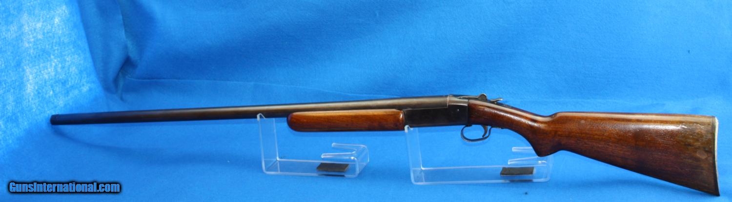Description: Winchester Model 37, single shot, break action 12 ga. full choke, 30" barrel, 14" LOP, wood stock and forearm. wood is in good condition with handling marks of a firearm which has been used but not abused, receiver and barrel are good with shiny bore. ADD 3% FOR CREDIT CARDS SHIPPING $25.00 SOLD |