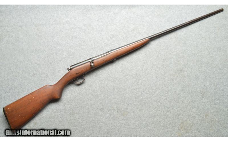 Description: SOLD Manufacturer: Manufactured between 1920 and 1941. Caliber Info: .410 Ga. Chambers: Bolt action single shot capacity. Metal Condition: Good, light scratches and some fading on the bluing. Wood Condition: Good, light scratches and some small dents. Bore Condition: Excellent, bright and shiny. Barrels: 24 inch round blued smooth bore barrel. Triggers: Single stage trigger. Stock: Smooth wooden pistol grip stock. Stock Dimensions: 13 1/2 inch length of pull. Fore End: Smooth wooden fore-end matches the stock. Butt Pad: Black synthetic butt pad. Weight: 4 pounds. Sights: Brass bead at the muzzle, V notch rear sight. Chokes: Fixed choke Full. Item Location: Berlin, MA |