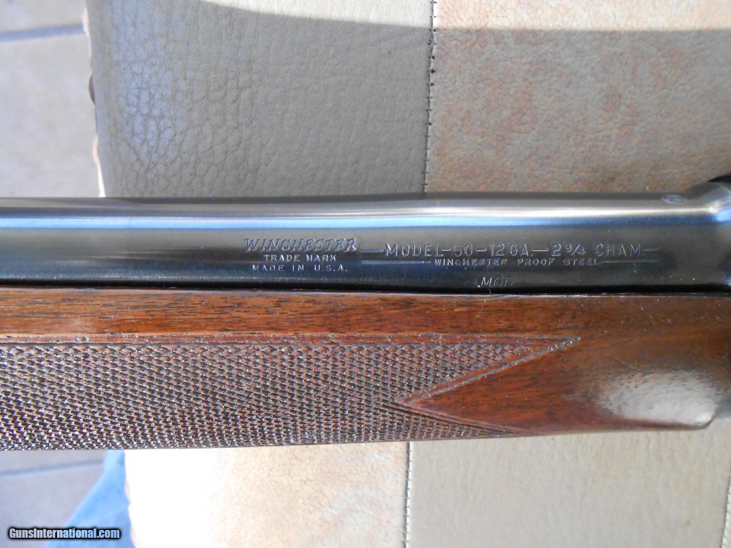 Description: Model 50 semi-automatic Featherweight shotgun. 28 inch plain barrel with modified choke. Very nice shotgun. All original except front sight bead. SALE PENDING SOLD Curio/Relic: Yes Manufacturer: Winchester Model: 50 Bore: 12 Chambers: 2 3/4 Condition: Good Metal Condition: 98% Wood Condition: Good Bore Condition: excellent Barrels: 28 inch Barrel Type: plain Action: semi-auto |