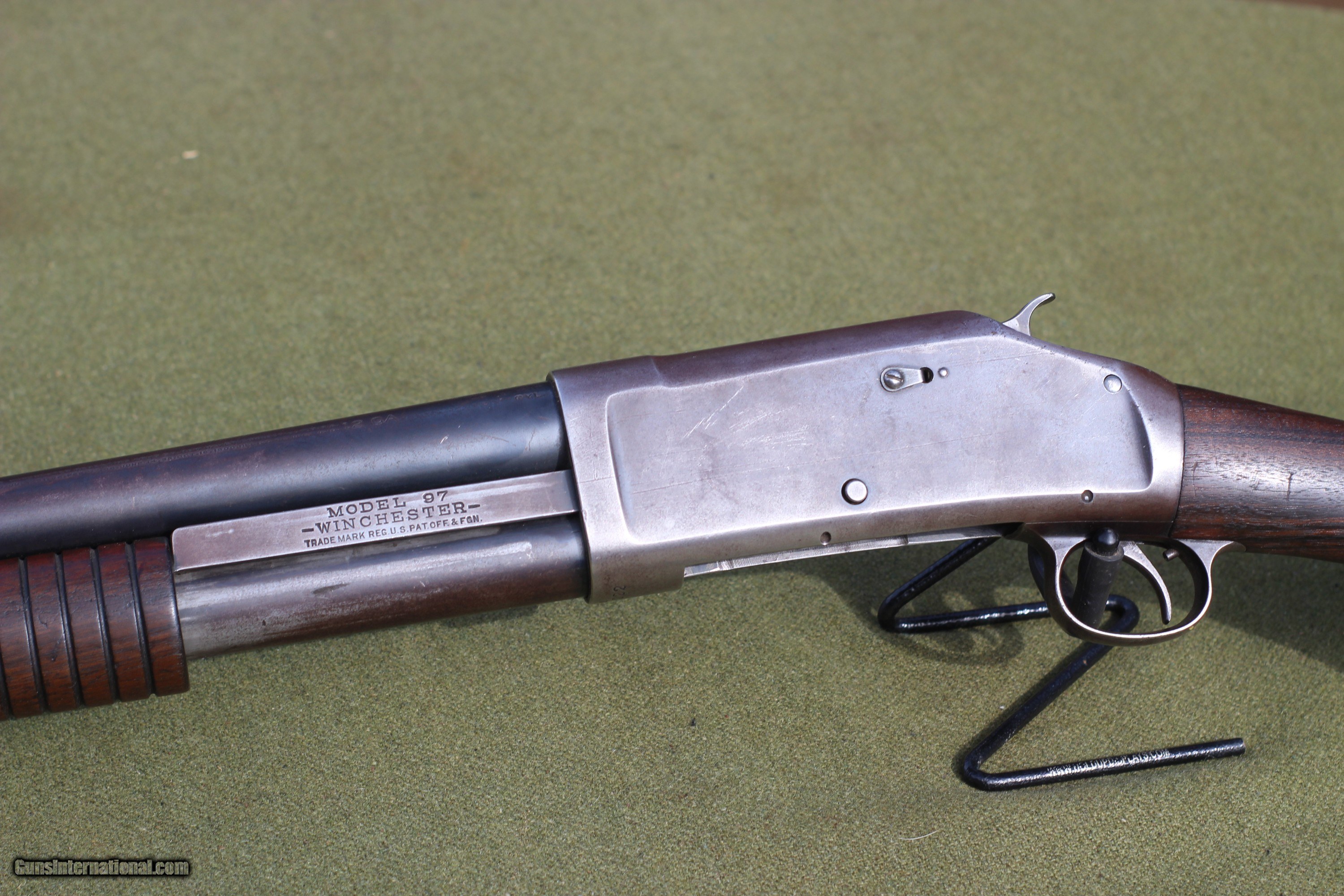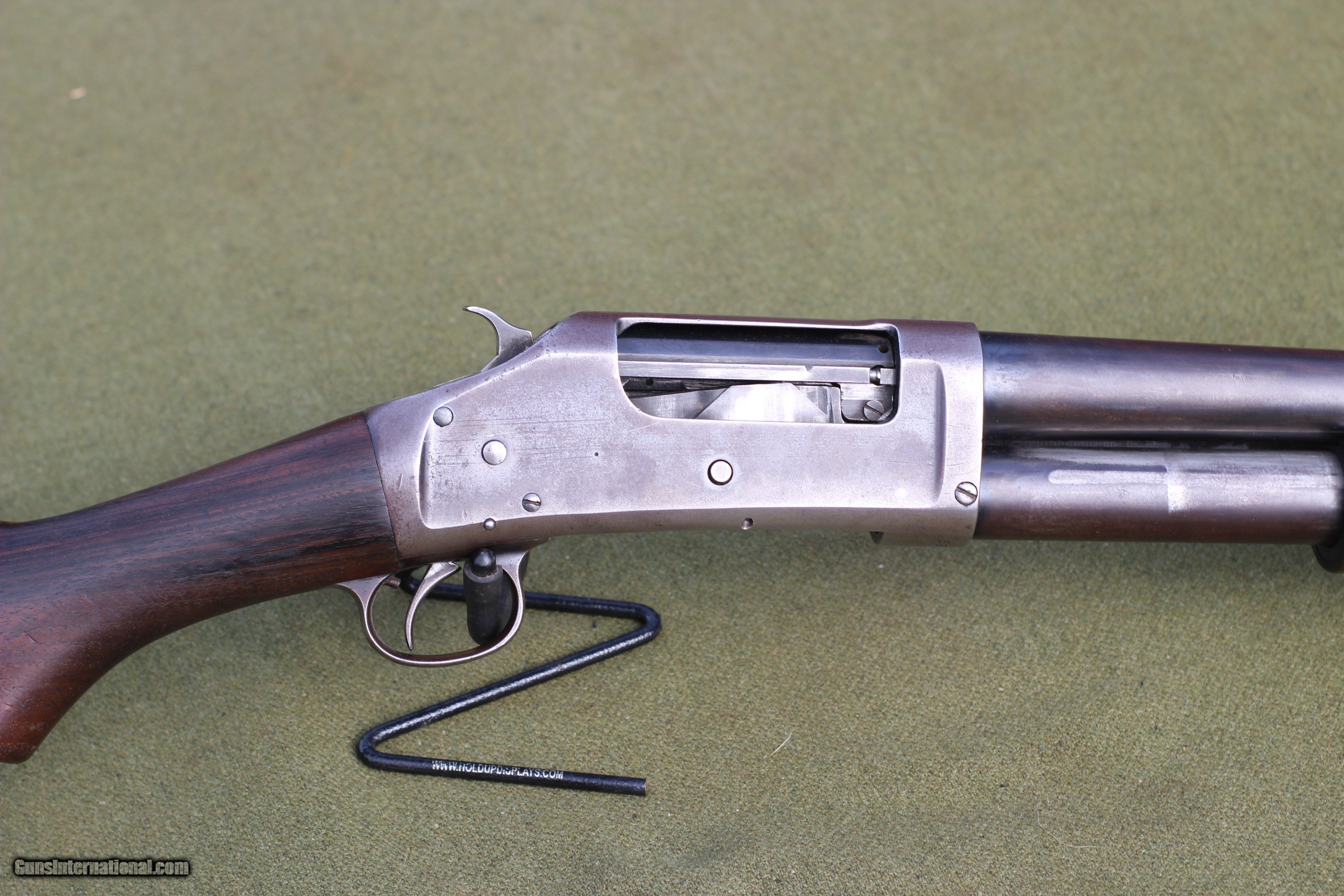 Description: Cylinder choke 20in barrel Excellent bore Original factory blue on reciever 20% Barrel and magazine tube 70% blue with the balance faded to gray patina No pitting Great mechanical Solid walnut stock no cracks or oil stains Soild frame 1897 variation All original +$50 shipping SOLD Shotgun Gauge: 12 Gauge |