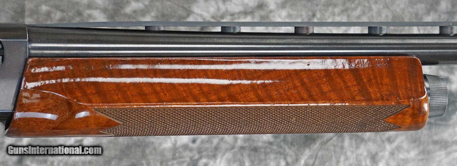Description: Pre-Owned Winchester Super X Model 1 Trap 12GA with 30" ramped rib barrel, Briley thinwall choked barrel (Mod Choke only). Blued action with minor bluing wear, scroll engraving. Factory pistol grip stock with finish wear, some finish has chipped off stock/forearm. Handling marks, minor finish wear on Beavertail forearm. Does not include case. SOLD Shotgun Gauge: 12 Gauge |