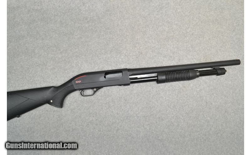 Description: The Winchester SXP Defender Pump-Action Shotgun uses an rotary bolt and inertia-assisted action to provide you with super fast follow-up shots when practicing home defense tactics. A durable synthetic stock with textured pistol grip and a tactical ribbed forearm give your hands a non-slip grip in any environment, and the Defender's non-glare matte black finish on barrel and receiver won't give your position away at night. The bore and chamber are hard chrome plated, and the 18" barrel has a fixed cylinder bore that works especially well with Foster-type rifled slugs or buckshot. A solid lug attaches the barrel to the magazine tube that holds 5 rounds (plus 1 in the chamber). The Winchester SXP Pump-Action Shotgun is a rugged, reliable self-defense shotgun. 12 Gauge SOLD Chambers: 12 Ga. Metal Condition: "Good, light handling marks and scratches on top side of barrel near the bead. Bore Condition: "Great, bright and smooth bore Barrels: 18 Stock Dimensions: 14" LOP Butt Pad: Rubber Recoil Pad Weight: 7 lbs Sights: Front bead sight Item Location: Columbus, OH |