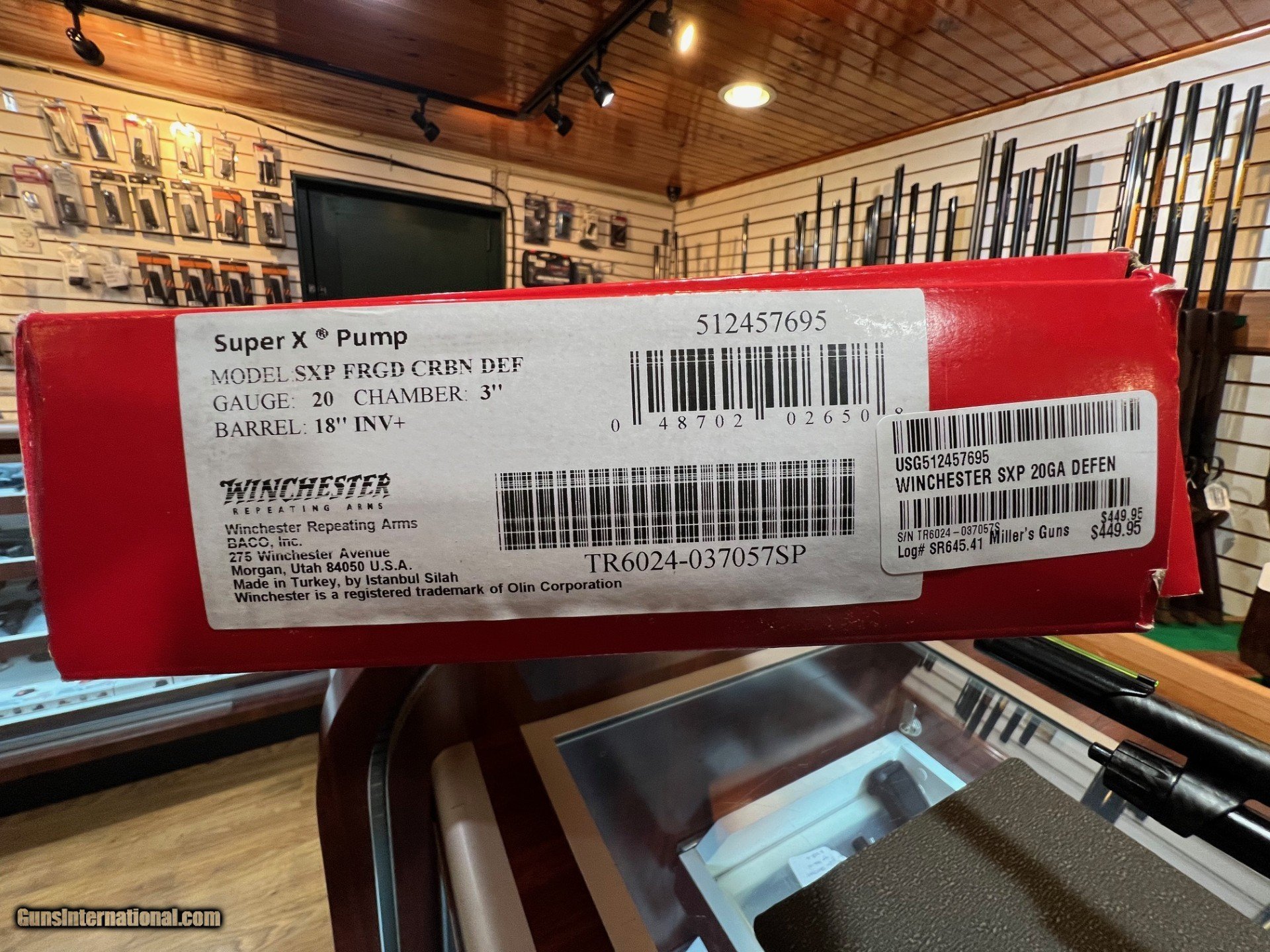 Description: New In Box Gauge 20 Chamber Length 3" Barrel Length 18" Overall Length 38 1/2" Length of Pull 13 3/4" Drop at Comb1 3/8" Drop at Heel 1 5/8" Weight 6 lbs 0 oz Magazine Capacity 5, 2 3/4" shells Barrel Finish Matte Stock Finish Satin Receiver Finish Matte Dura Touch Finish No Chamber Finish Chrome Plated Chamber and Bore Front Sight Brass Bead Barrel Material Steel Stock Material Composite Recoil Pad Inflex 1 Checkering Textured Grip Panels Sling Swivel Studs Matte Blued Receiver Material Aluminum Alloy Trigger Finish Matte Trigger Guard Finish Matte Bolt Slide Finish Matte Black Chrome Magazine TypeT ubular Trigger Material Steel Trigger Guard Materia lComposite SOLD Shotgun Gauge: 20 Gauge Manufacturer: Winchester Model: SXP Defender Serial Number: TR6024-037057S Barrel Length: 18 Condition: NEW |