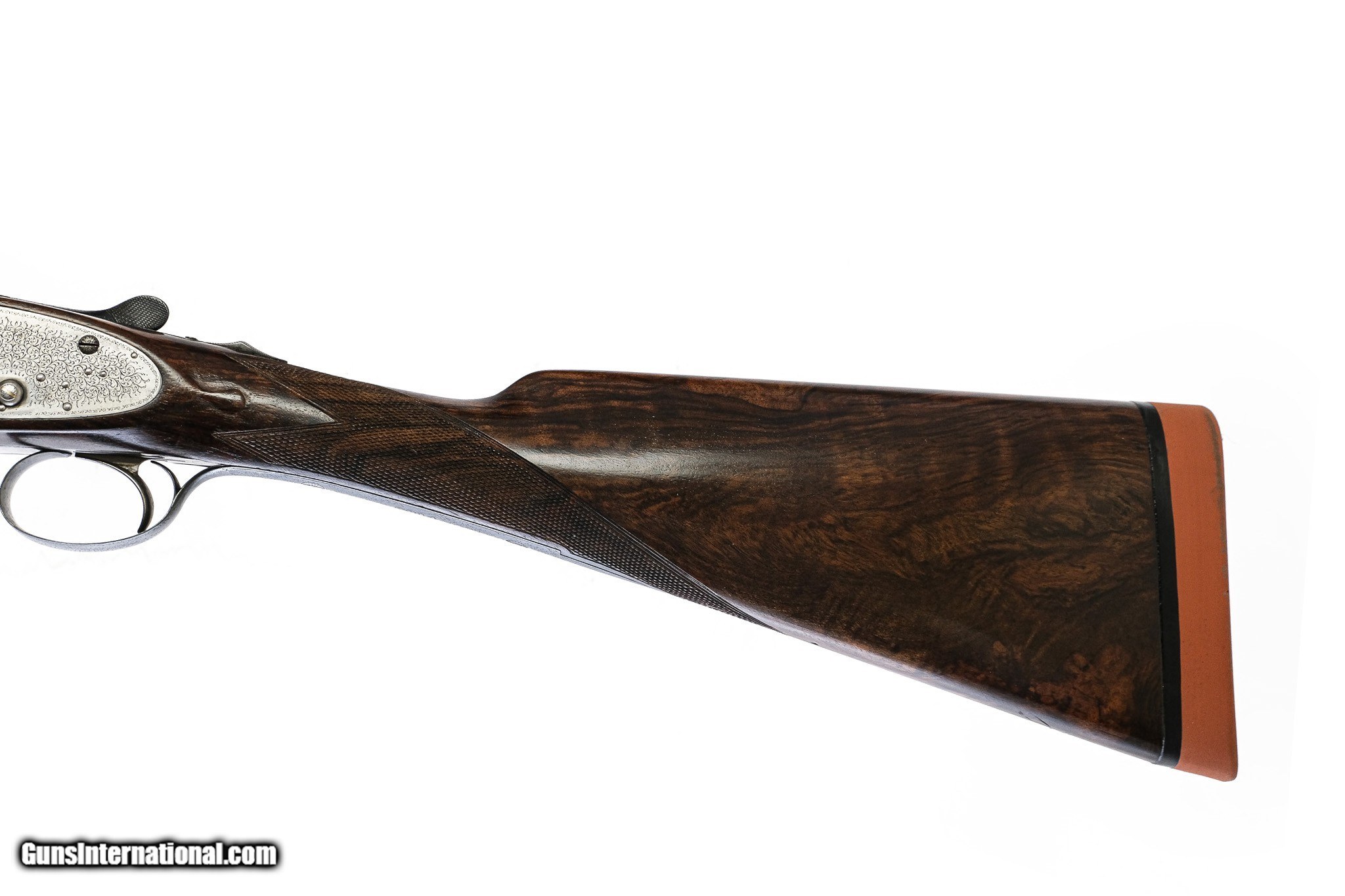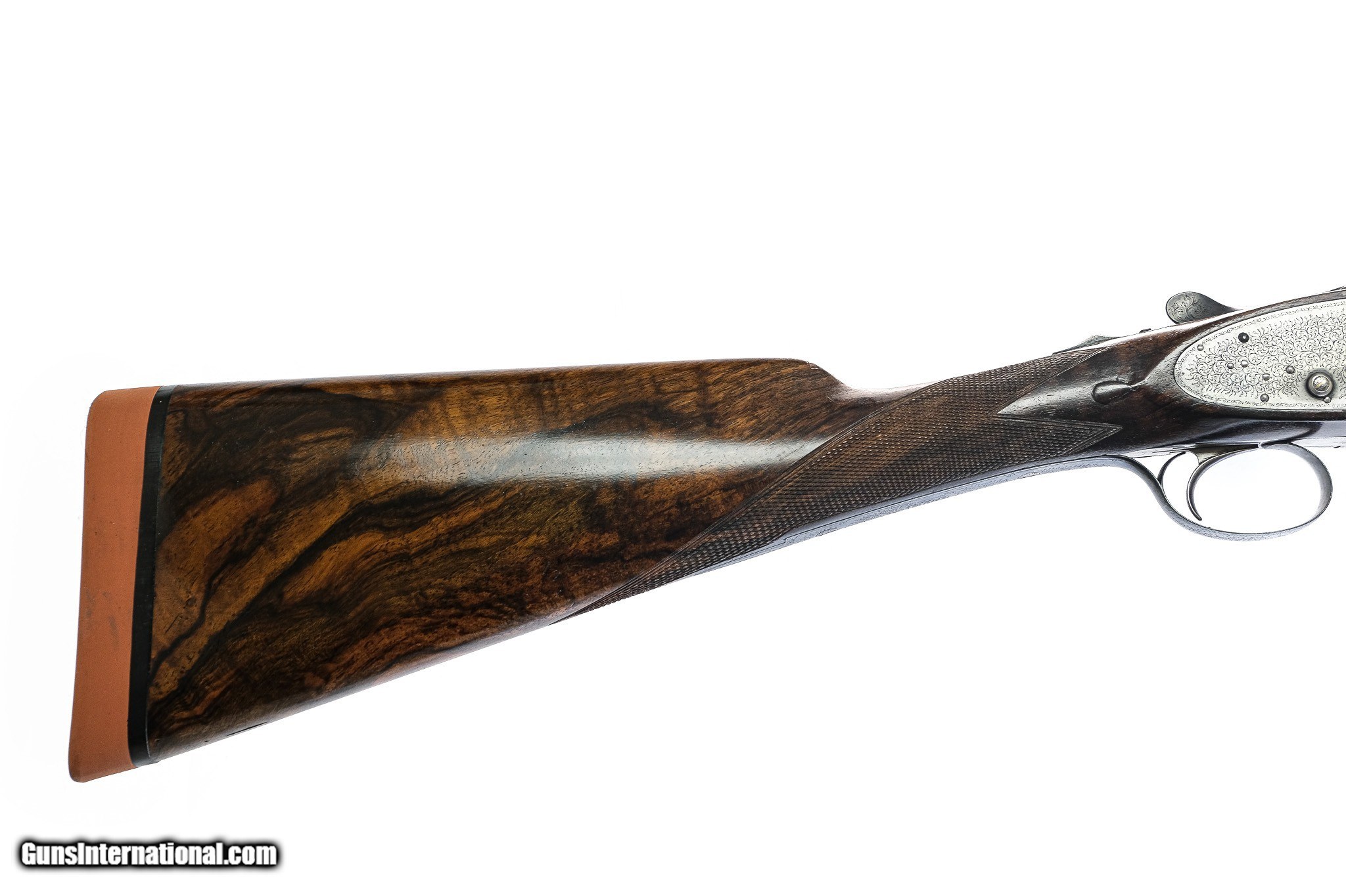 Description: J. Woodward & Son - Full Sidelock, SxS, 12ga. 29" Barrels Choked IC/IC. Straight grip, checkered butt, Woodward SINGLE trigger, arcaded fences, beautiful Rose and Scroll, automatic ejector, traces of case color, 98% blued, functions perfectly ! excellent barrels! Very high quality pre war gun! Just a great vintage gun that’s very solid and priced very reasonably. Inv: 80805 6 lbs. 8 oz. 14 1/8" (with pad) x 1 ½" x 2 ½" $6,995.00 SOLD |