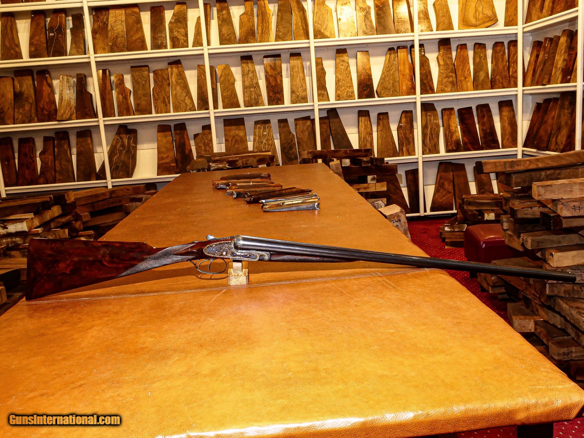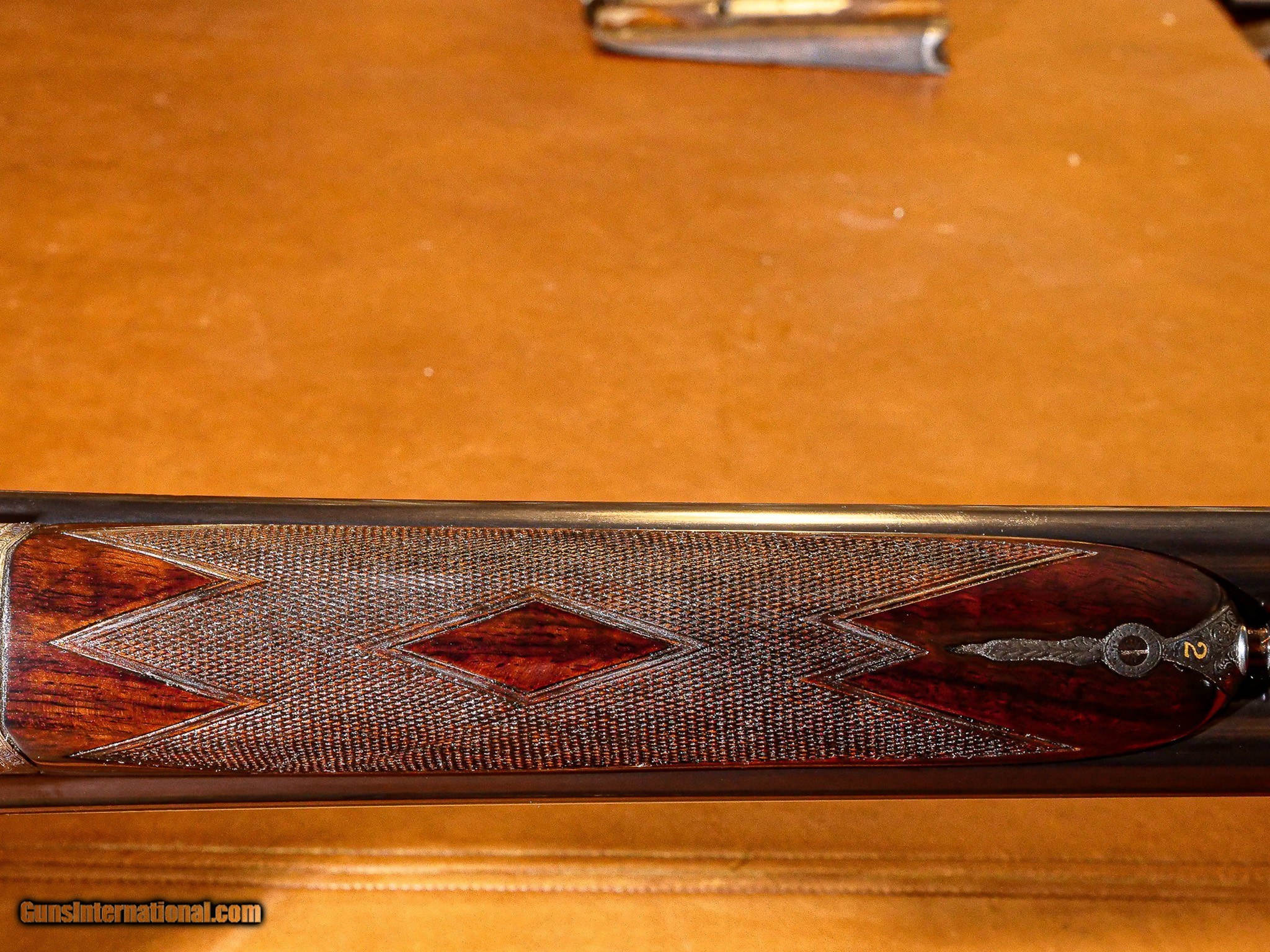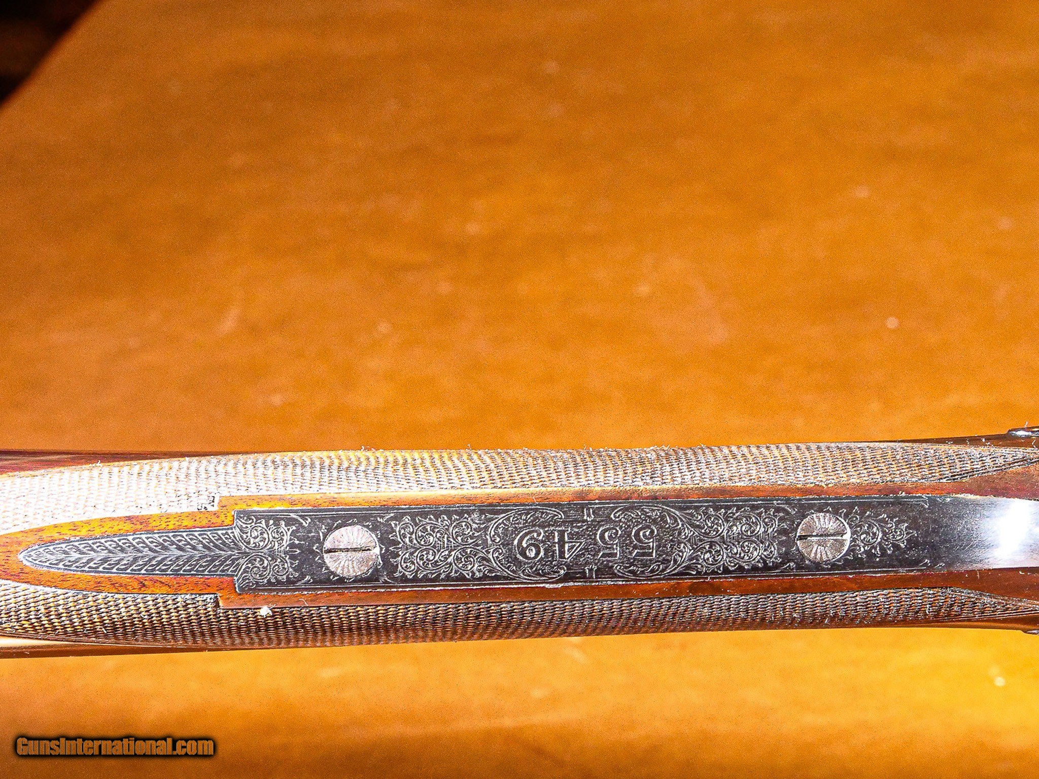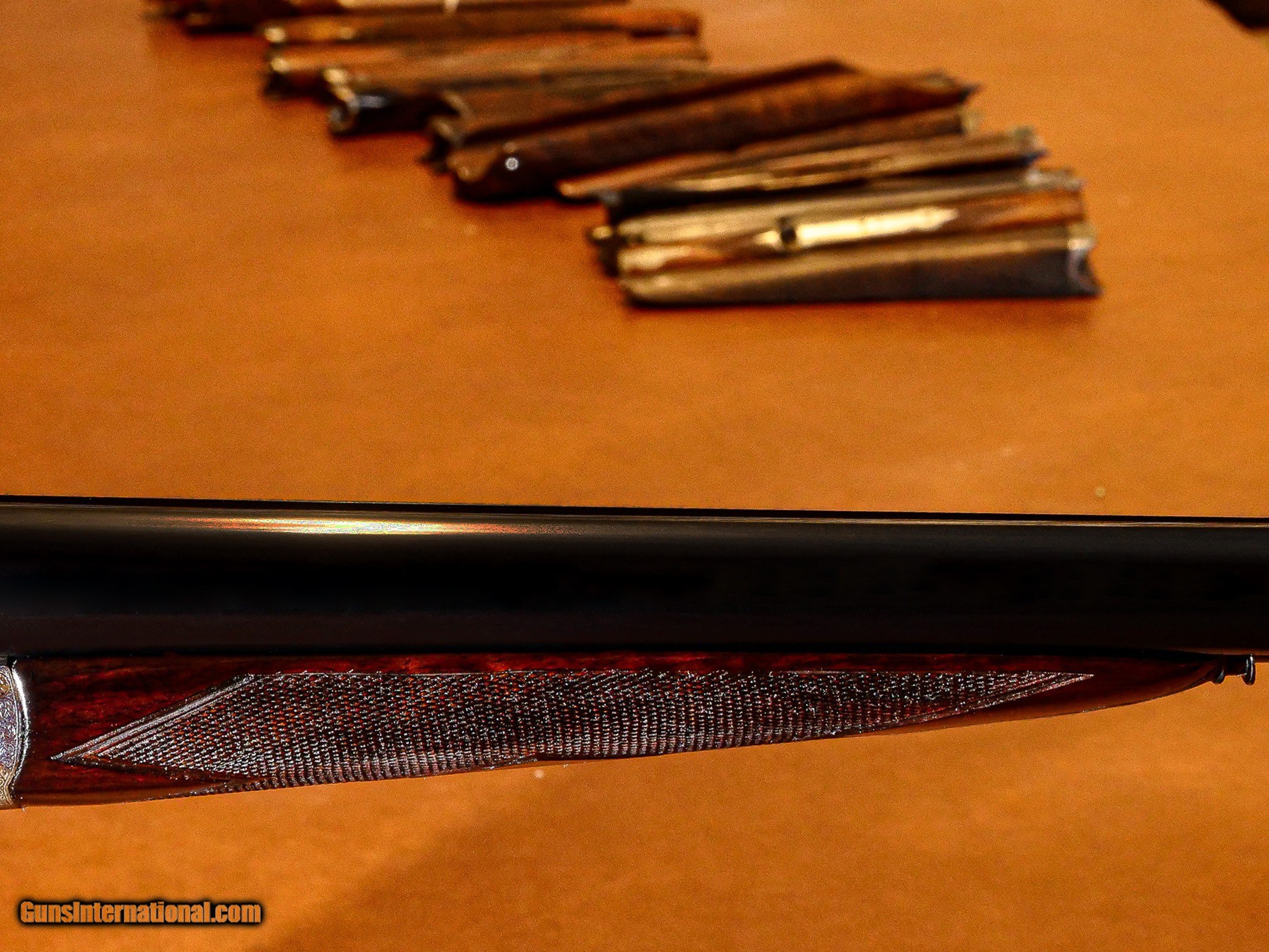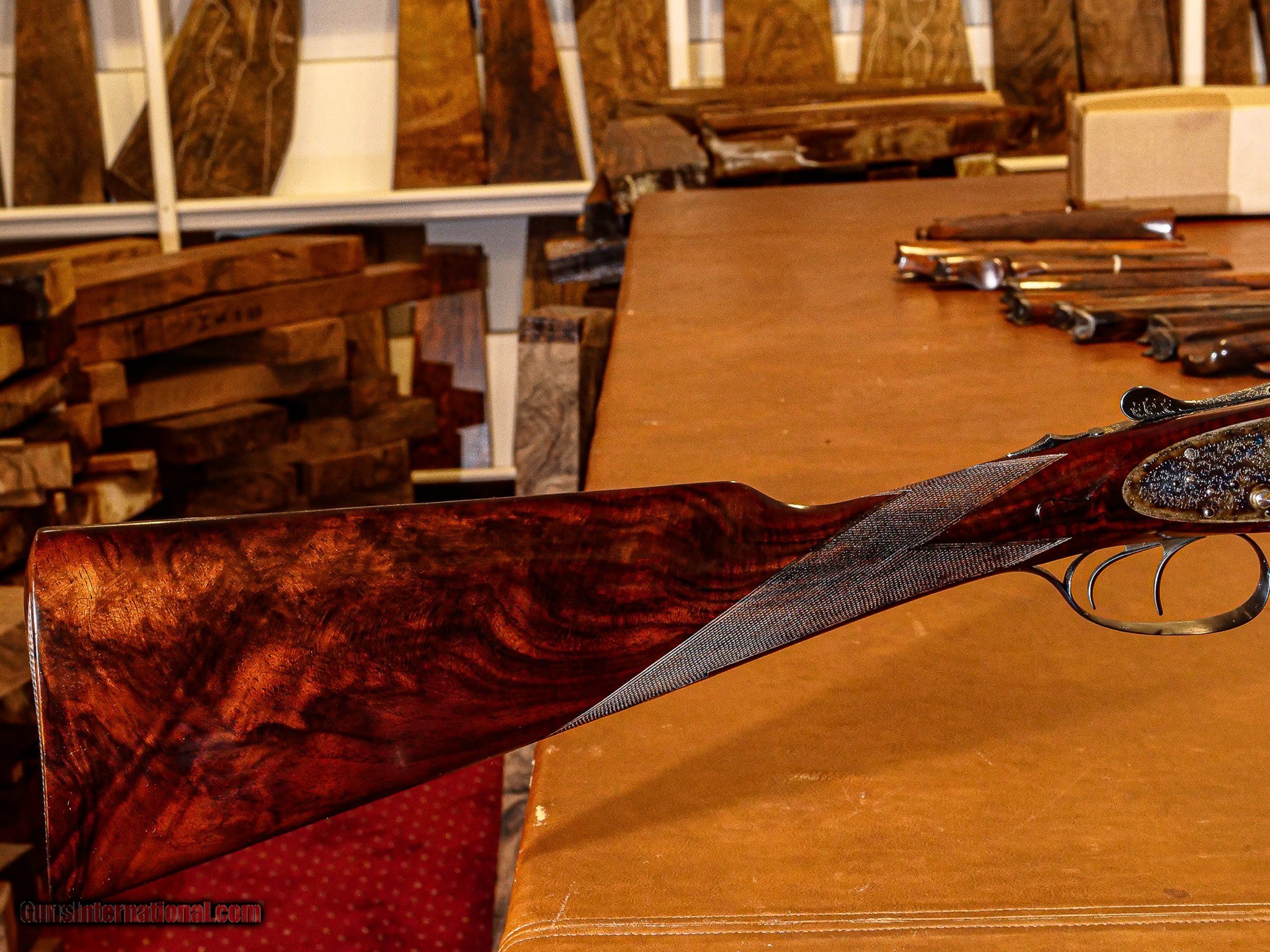 Description: James Woodward & Son - SxS, 12ga. 29" Whitworth Steel Barrels Choked IC/IC. 2 ½” chambers, perfect barrel lettering Whitworth fluid pressed steel barrels, built for a colonel. Originally #2 of a pair. Near flawless wood, perfect drop points, perfect inletting, splinter forend, cocking indicators, gold oval, checkered butt, automatic ejector, straight grip, double trigger. Gun comes to us after a complete English style refurbishment. Perfect screws, perfect beautiful engraving. This gun is indistinguishable from a new gun; you will find zero flaws. Perfect blue, very highly figured piece of wood, flawless checkering. Slight right hand cast, third fastener. In its original oak and leather case with Woodward label. Comes with a lifetime warranty to the original owner courtesy of Connecticut Shotgun. Inv: 87665 6 lbs. 7 oz. 14 7/8" x 1 ½" x 2 ¼" $14,995.00 The largest, most diverse, high-grade shotgun and firearms inventory in history. There is no one even close and a service department to back up everything we sell with our unparalelled warranty to support our customers exclusively. If someone tells you they have a larger inventory, just look for yourself. SOLD |