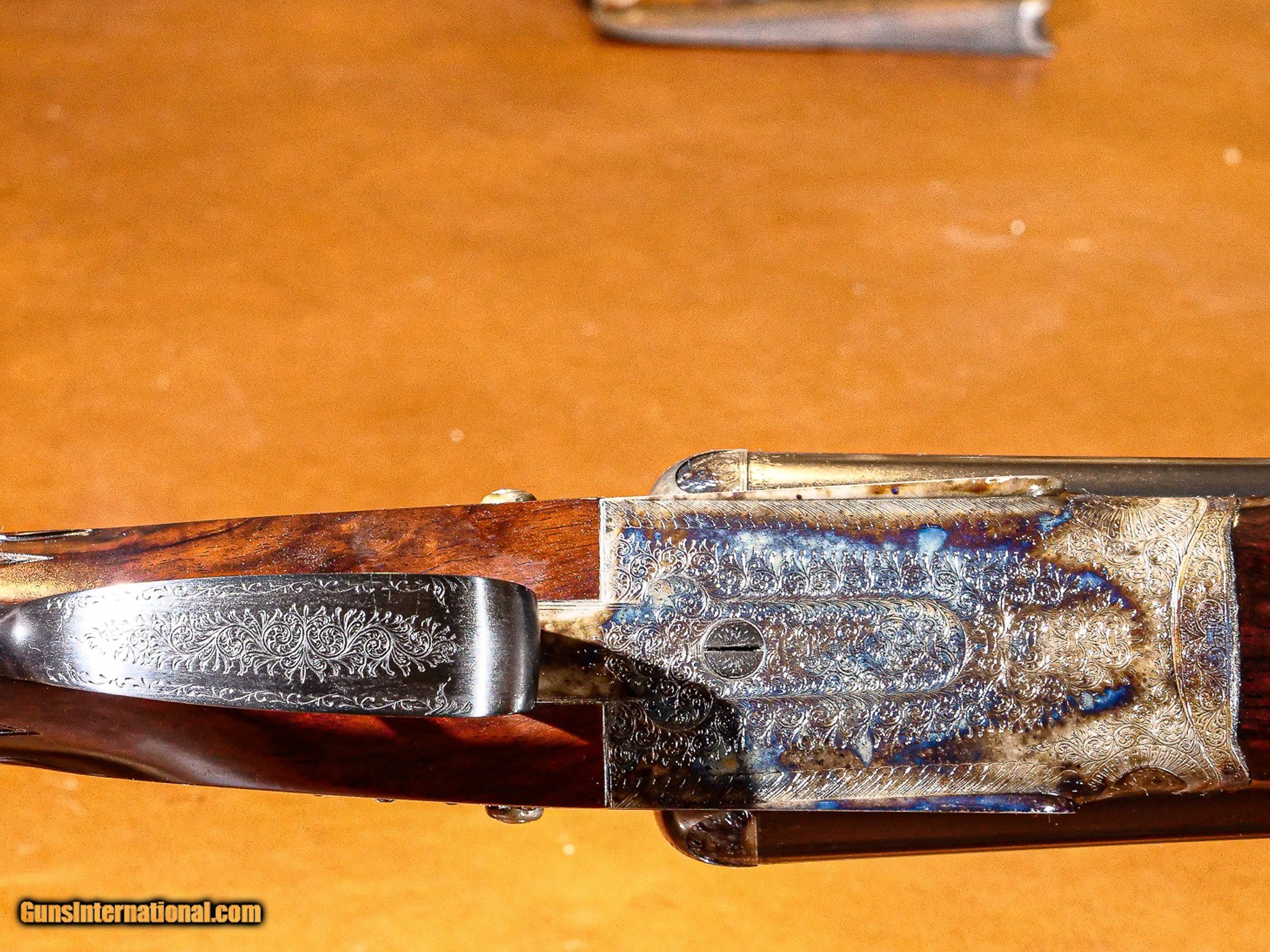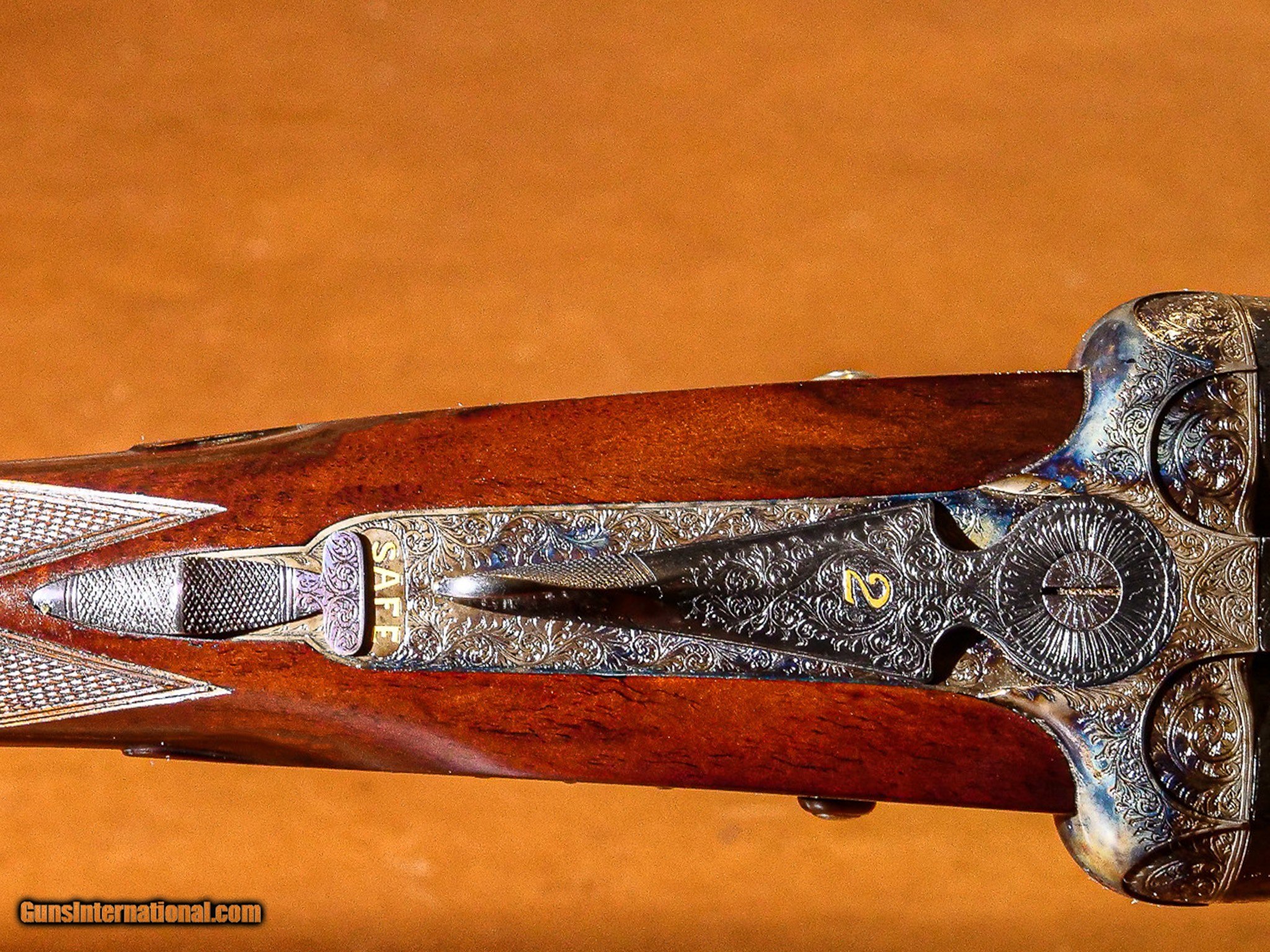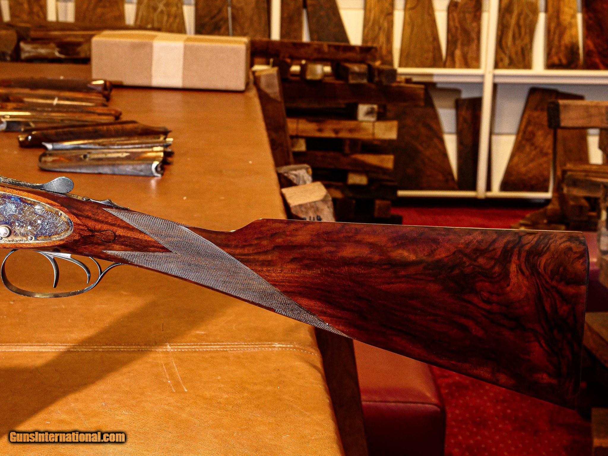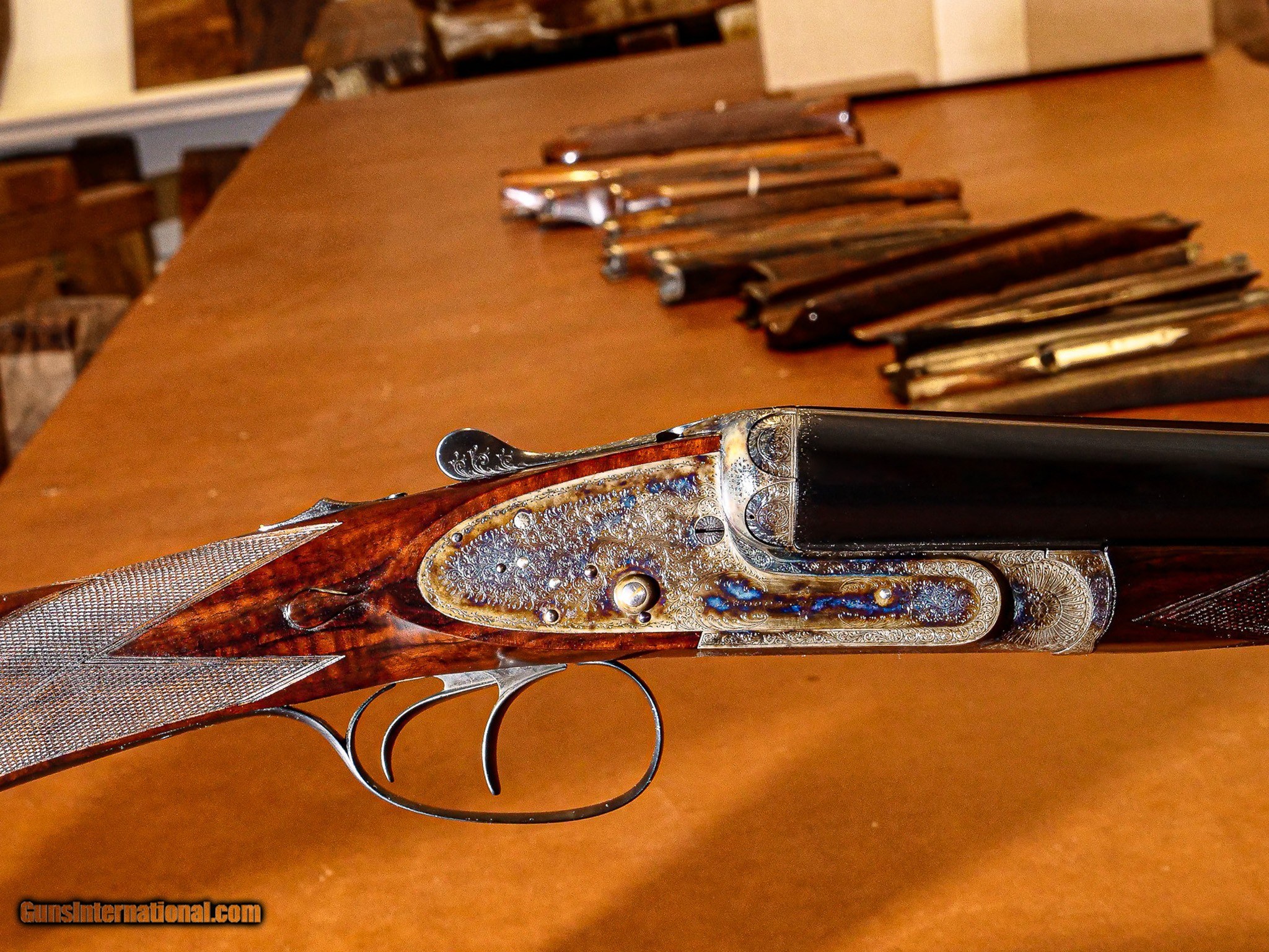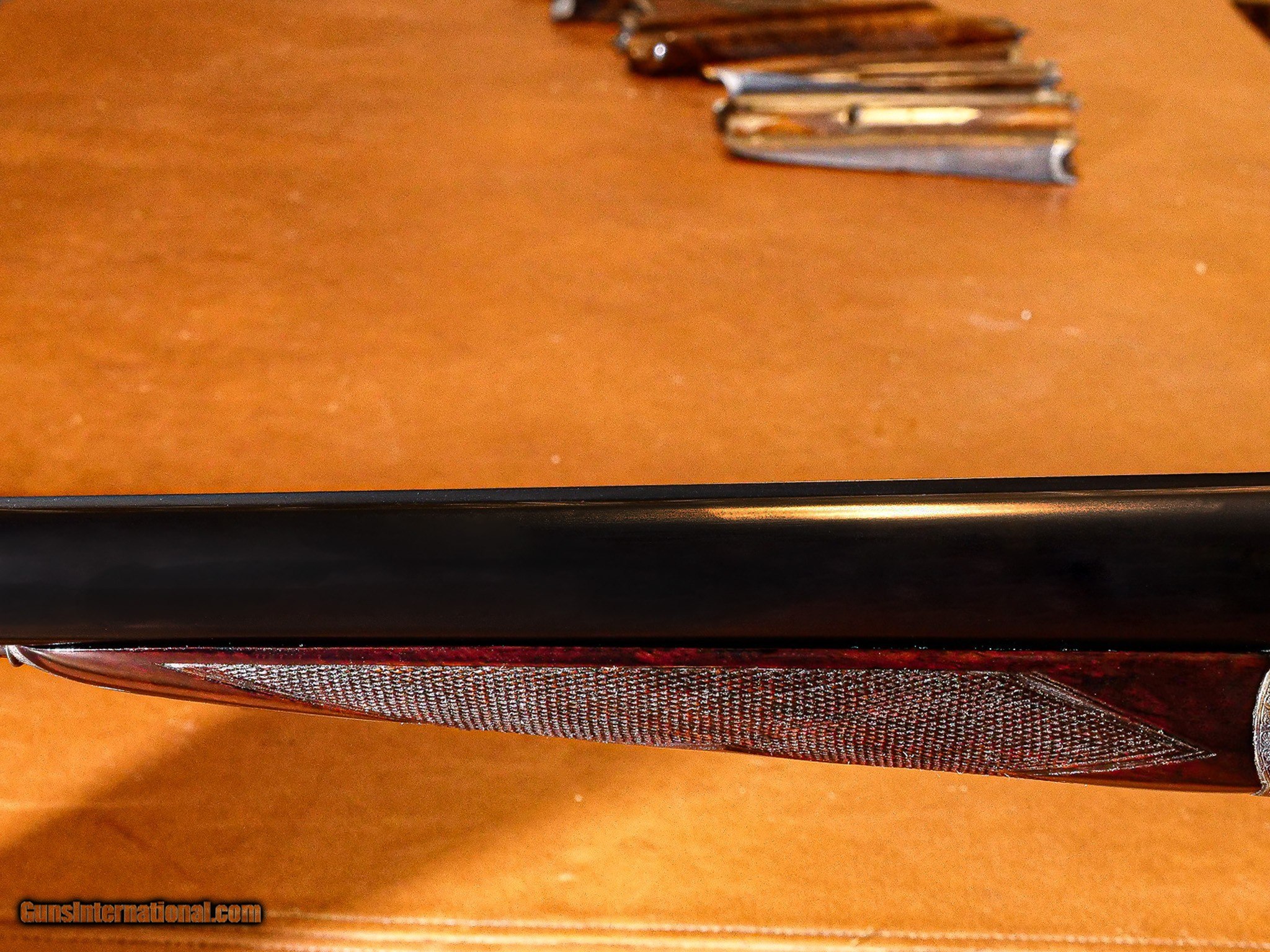 Description: James Woodward & Son - SxS, 12ga. 29" Whitworth Steel Barrels Choked IC/IC. 2 ½” chambers, perfect barrel lettering Whitworth fluid pressed steel barrels, built for a colonel. Originally #2 of a pair. Near flawless wood, perfect drop points, perfect inletting, splinter forend, cocking indicators, gold oval, checkered butt, automatic ejector, straight grip, double trigger. Gun comes to us after a complete English style refurbishment. Perfect screws, perfect beautiful engraving. This gun is indistinguishable from a new gun; you will find zero flaws. Perfect blue, very highly figured piece of wood, flawless checkering. Slight right hand cast, third fastener. In its original oak and leather case with Woodward label. Comes with a lifetime warranty to the original owner courtesy of Connecticut Shotgun. Inv: 87665 6 lbs. 7 oz. 14 7/8" x 1 ½" x 2 ¼" $14,995.00 The largest, most diverse, high-grade shotgun and firearms inventory in history. There is no one even close and a service department to back up everything we sell with our unparalelled warranty to support our customers exclusively. If someone tells you they have a larger inventory, just look for yourself. SOLD |
