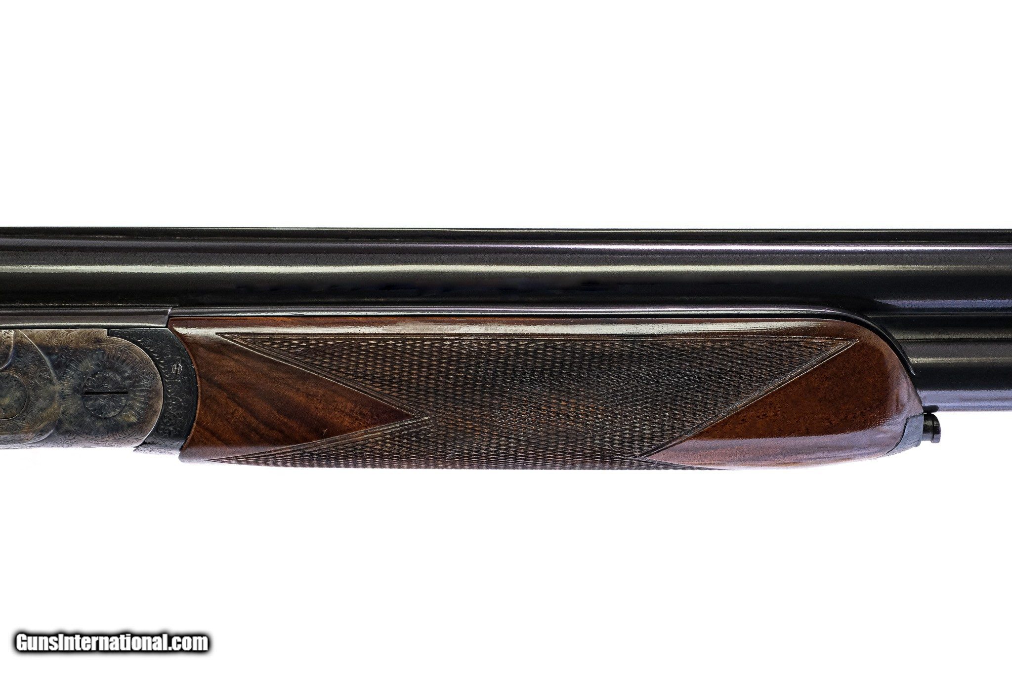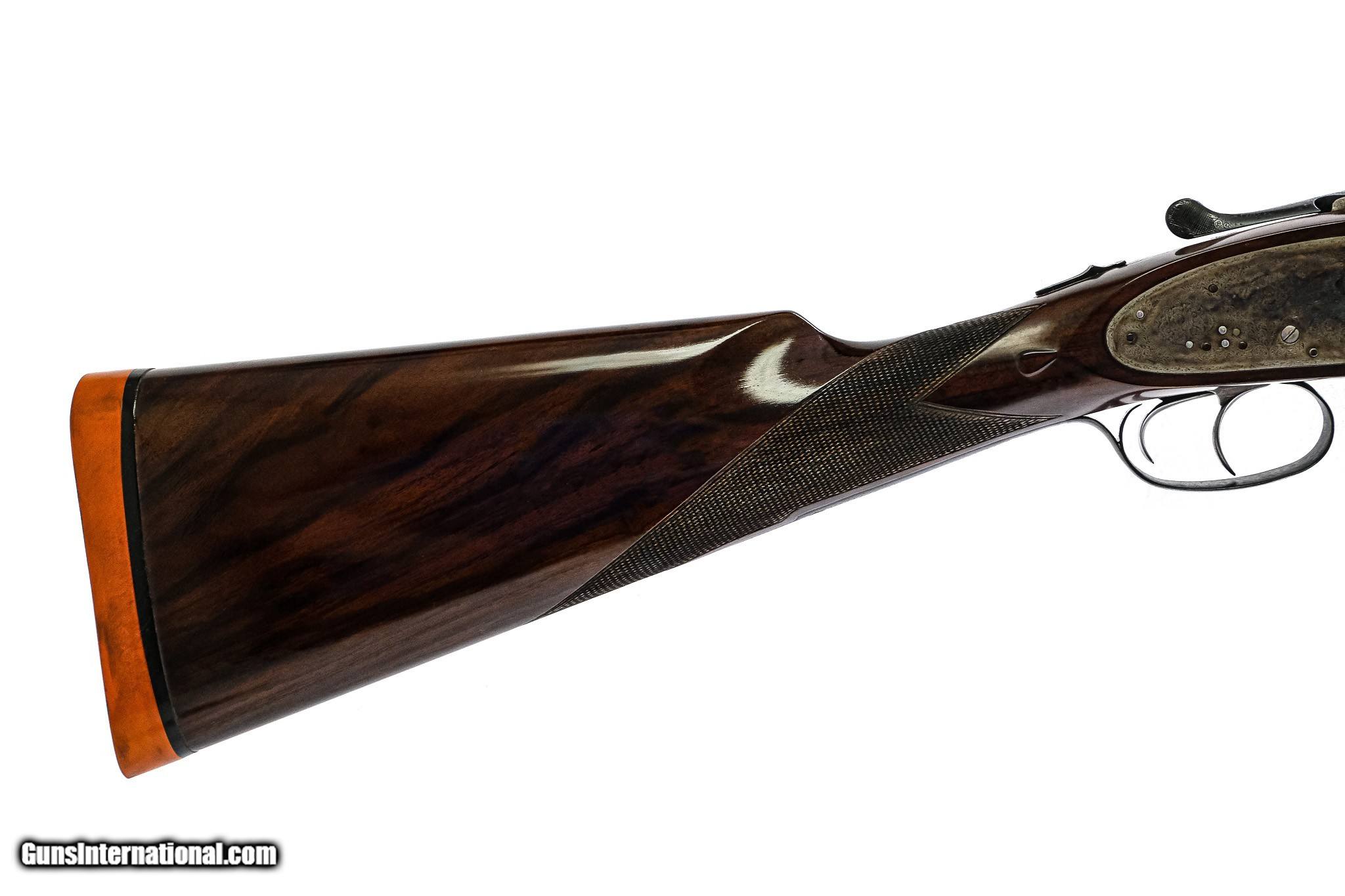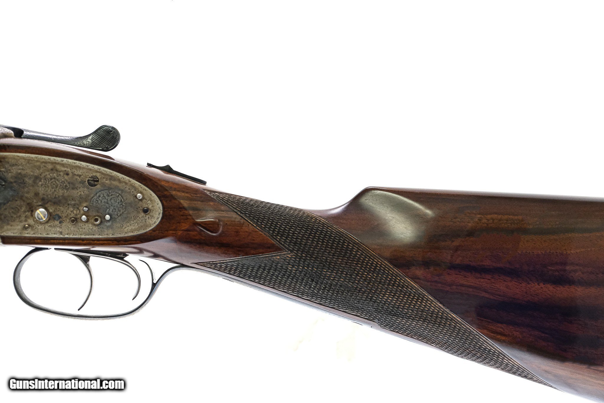 Description: Victor Sarasqueta - #14, O/U, 12ga. 27 ½ “ Barrels. An exact copy of a Woodward shotgun made in England 27 ½ “ solid rib, double trigger, hinged front, straight grip, silvers pad, drop point stock, Woodward type wings over the forend, perfect screws, complete English style refinish, with most of the case color, with extreme high quality rose and scroll, automatic ejector, wonderfully straight Turkish walnut stock. This is an extremely high grade/ high quality gun. Which are very seldom seen! Inv: 67842 7 lbs. 6 oz. 15" x 1 ½" x 2 ¼" $7,995.00 SOLD |