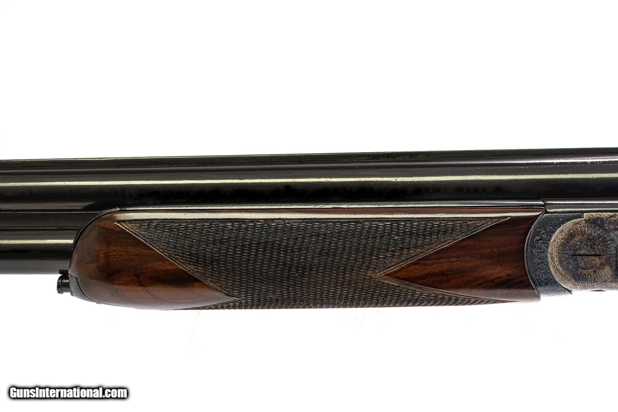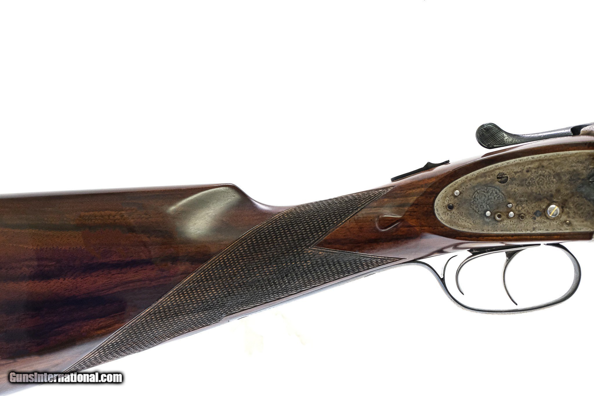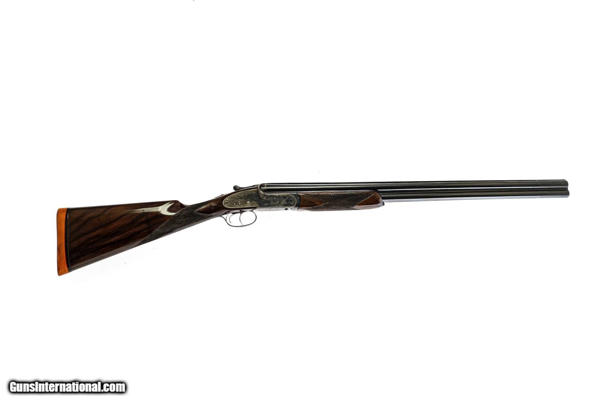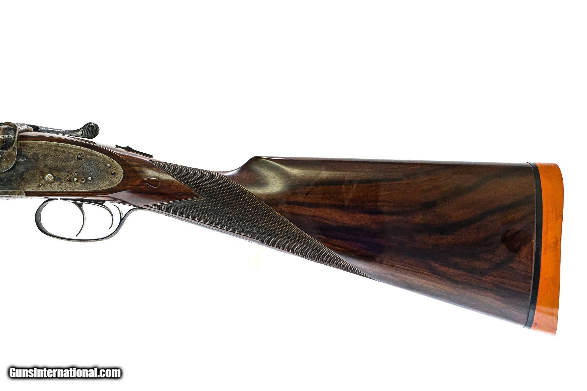 Description: Victor Sarasqueta - #14, O/U, 12ga. 27 ½ “ Barrels. An exact copy of a Woodward shotgun made in England 27 ½ “ solid rib, double trigger, hinged front, straight grip, silvers pad, drop point stock, Woodward type wings over the forend, perfect screws, complete English style refinish, with most of the case color, with extreme high quality rose and scroll, automatic ejector, wonderfully straight Turkish walnut stock. This is an extremely high grade/ high quality gun. Which are very seldom seen! Inv: 67842 7 lbs. 6 oz. 15" x 1 ½" x 2 ¼" $7,995.00 SOLD |