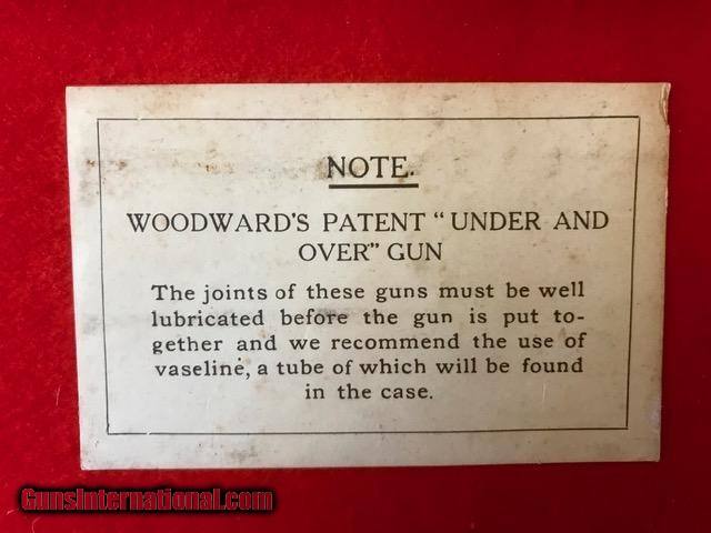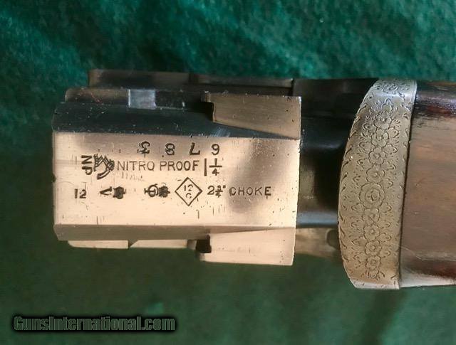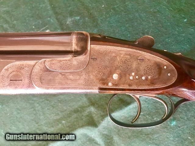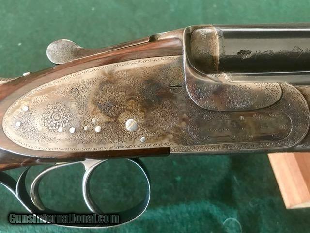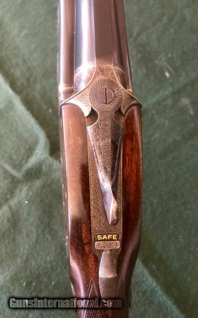 Description: This c. 1926/7 Woodward is exactly what most of us would order were we able to walk into Woodward‘s shop today. It is a heavy game gun with 30 inch barrels and a low, solid rib. It is chambered for 2 3/4” inch shells and heavily choked. The bores are perfect in every dimension and as they left the factory, as is all the blueing and case colours. The straight hand stock 14 1/2” and had a very light re-oiling when it came out of storage. The action is still very tight and overall this exceptional shotgun shows almost no sign of use whatsoever. Priced at $47.500, Firm SOLD |