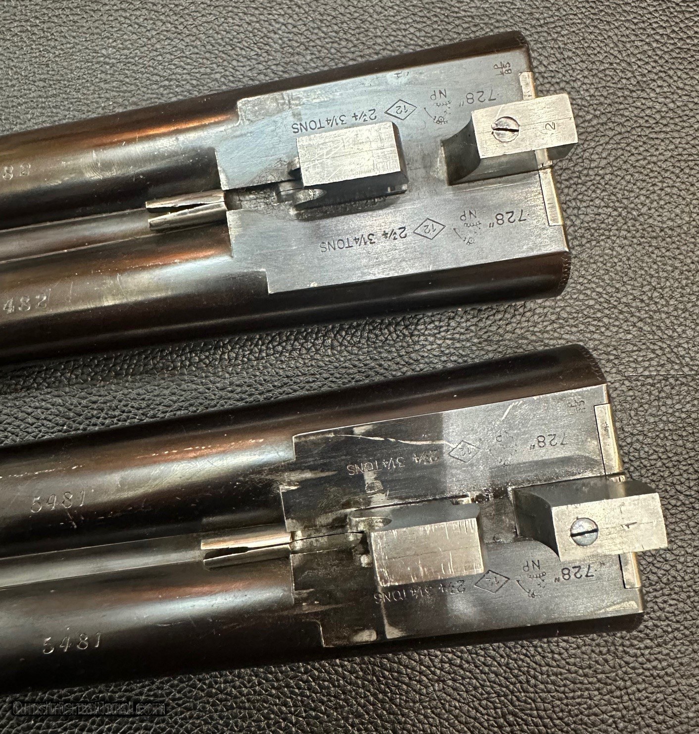 Description: JAMES WOODWARD Pair - The Automatic - Sidelock ejector - 1900 Description: Exceptional Pair of Woodward The Automatic made in 1900 - 12 bore double-trigger side by side, sidelock ejector. Serial 5481 - 5482 for 1900 - 74 cm chopperlump barrels. Automatic Safety. 12 bore - 2 1/3 chambers - fixed chokes 0,2 mm / 0,5 mm (1/4 - 1/2) - Modern barrels by the maker (Purdey) around 1980 (728 int. diameter) Hightly figured semi-pistol grip stock : Lenght 38 cm 38 cm 39,5 cm Drop C : 35 mm H : 60 Cast right handed 0,4 mm - Good original conditions with modern barrels by the maker This rifle comes from France Original and very good conditions Available in our Paris Shop Armurerie Elysées and ready to export to US. We handle all customs formalities and transport right to your gun shop. All informations on our guns are available on armurerie-elysees Shotgun Gauge: 12 Gauge Manufacturer: james Woodward Model: The Automatic Barrel Length: 74 cm Chambers: 70 mm Ejectors: yes Condition: 70 % Metal Condition: 80% Wood Condition: 70% Bore Condition: 70 % Barrel Type: Chopperlump Action: woodward Triggers: double Weight: 3,1 kg Manufacture Date: 1900 Case: NO Minimum Wall Thickness Left: 7/10 mm Minimum Wall Thickness Right: 7/10 mm Price: $38,000.00 Shipping: $1,500.00 Contact Seller |
