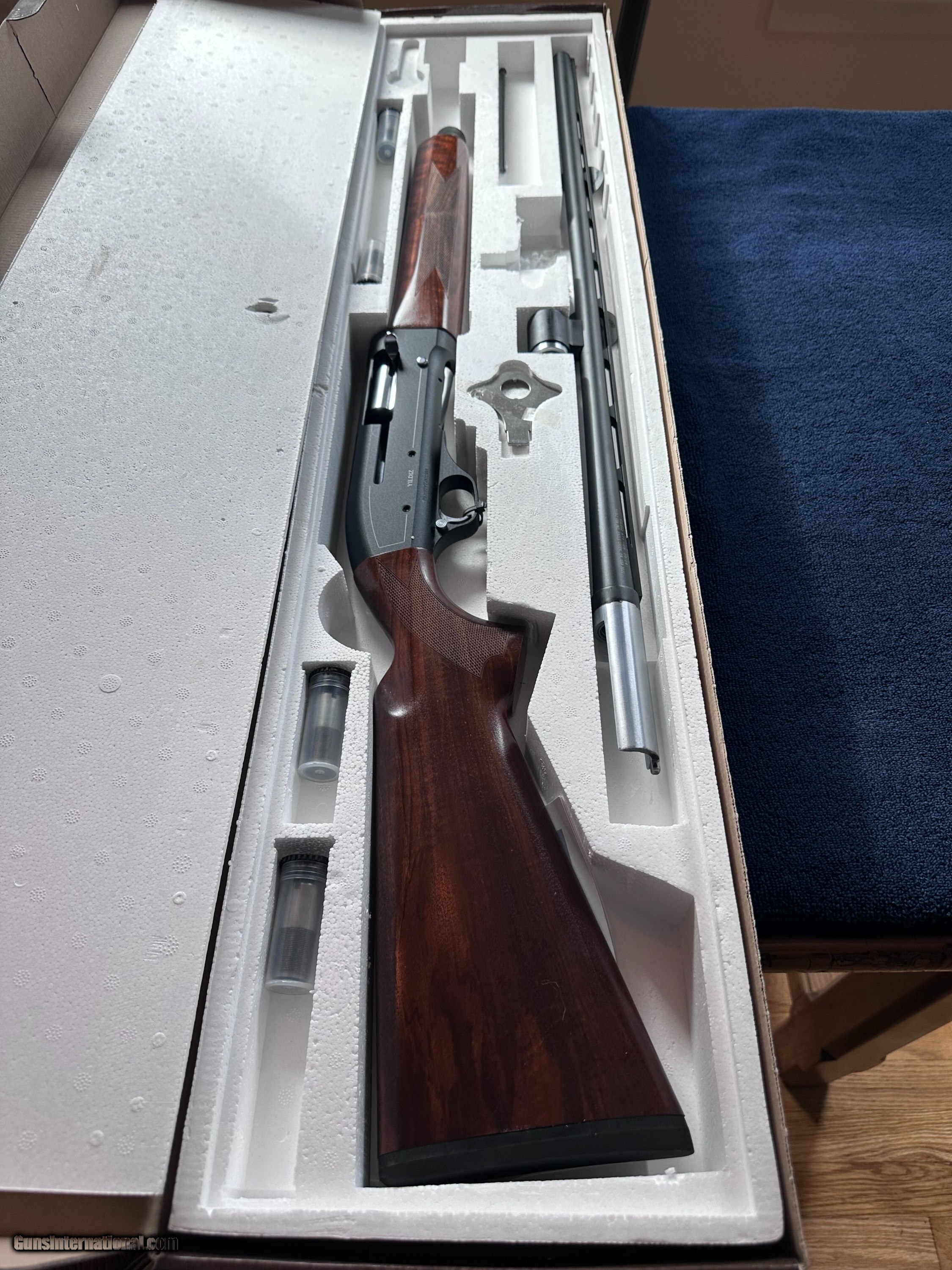 Description: NEW SALE PRICE. Best of Turkish shotguns, YILDIZ strives to compete with best guns in the world for much less, but great value and unbeatable quality. A-71 is a gas operated semi- auto shotgun, featuring an aluminum allow receiver and 4140 quality steel barrel, has self cleaning gas system. The YILDIZ A-71 is designed for reliability with various loads including steel shots and uses a similiar auto loading system as Banelli automatic shot guns. This featured gun has an up-graded hand oil finished Turkish walnut stock. Shotgun Gauge: 20 Gauge Manufacturer: Yildiz Model: A- 71 Serial Number: 79-H22YT-001588 Barrel Length: 28 Bore Info: 20 ga Chambers: 3 Ejectors: auto Condition: New Metal Condition: New Wood Condition: New Bore Condition: New Barrels: special steel Barrel Type: Semi-Auto Triggers: Single Stock: pistol grip Rib: Ventilated Finish: oil finish Sights: Tritium night sights Chokes: total of 6 chokes Case: original factory box Item Location: Oregon Price: $1,150.00 Buy Now Contact Seller |