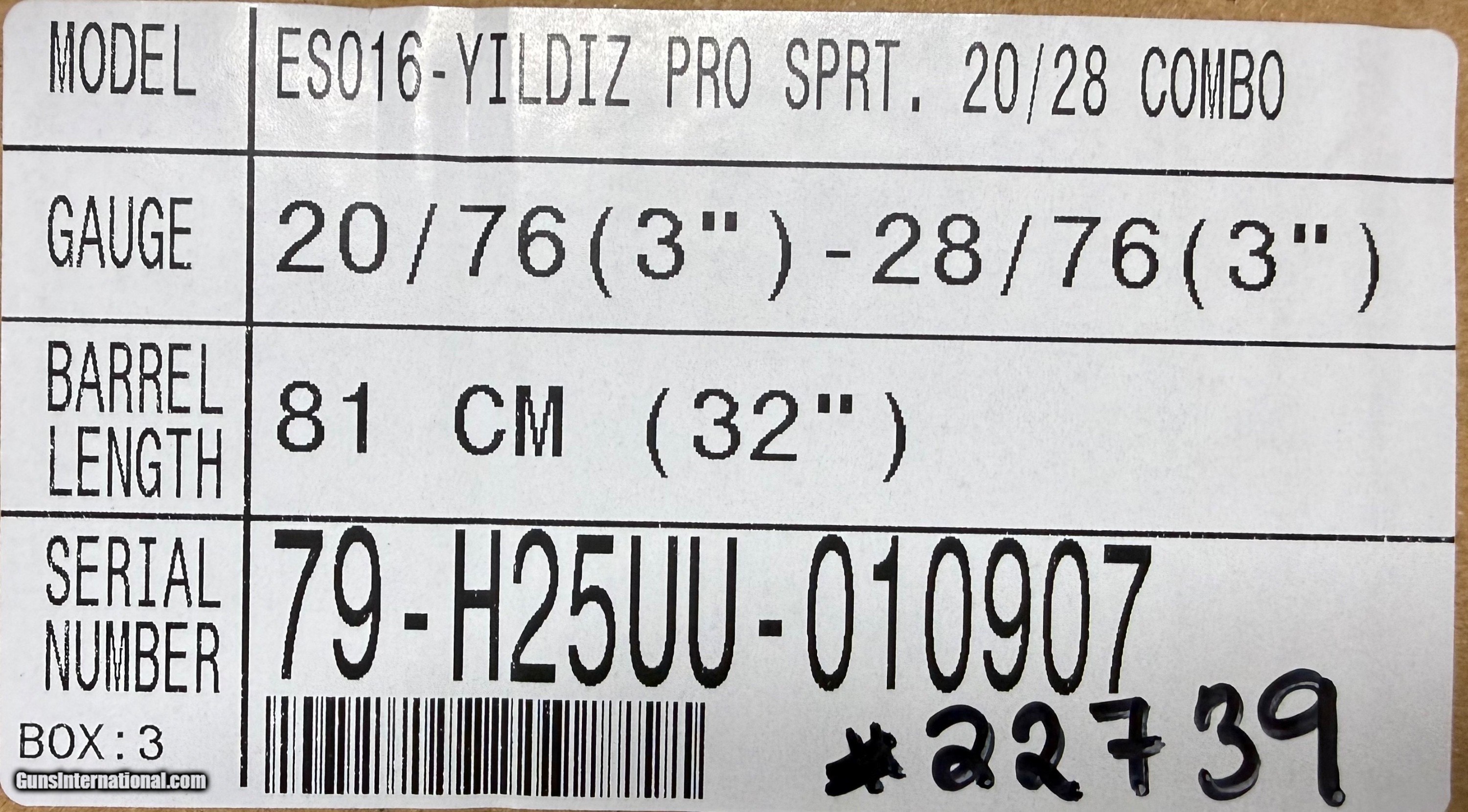 Yildiz Pro Star Scroll Engraved Sporting Combo 20/28ga 32” Barrel. New in case with 5 chokes for each gauge.