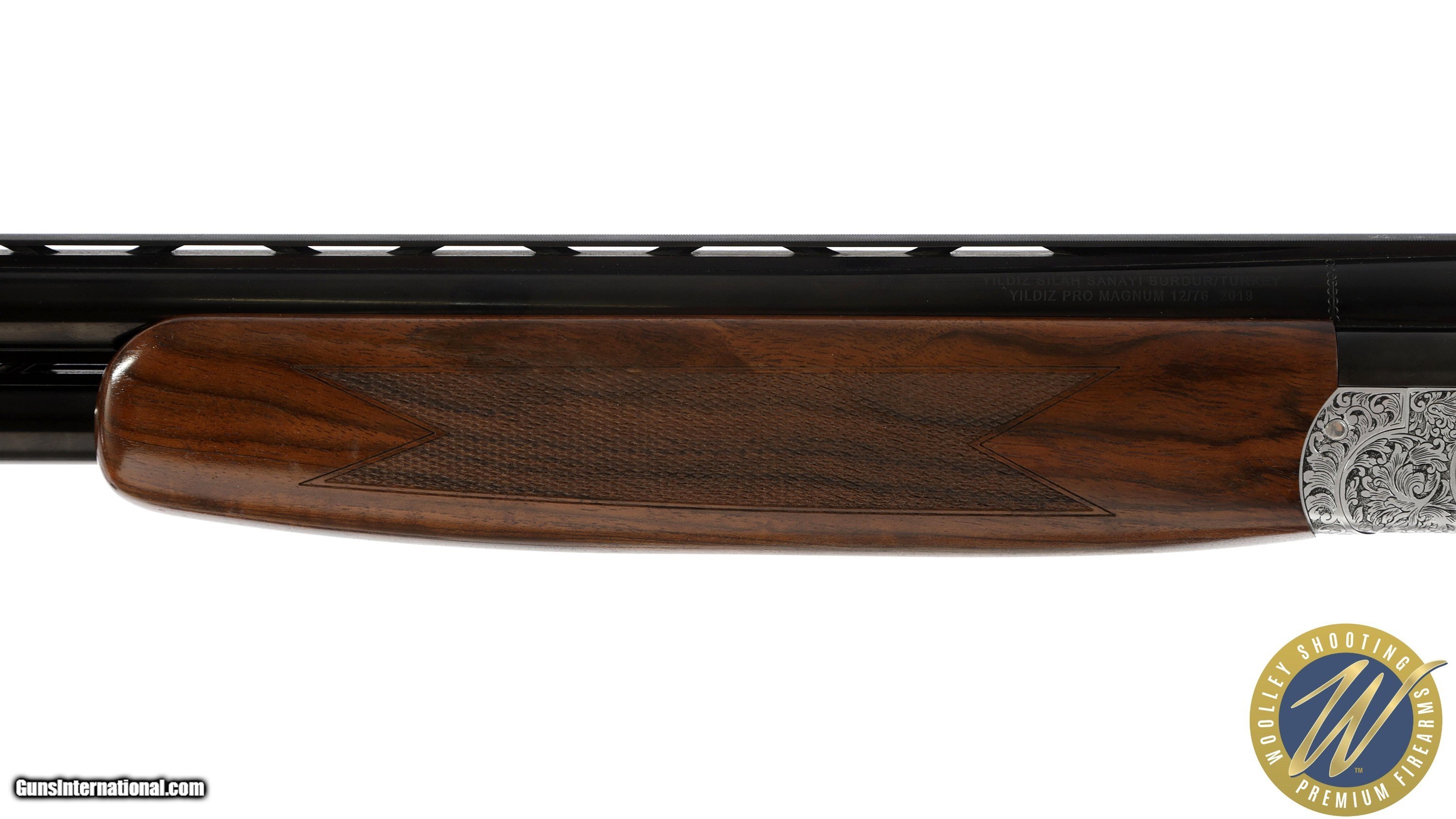 • Gauge: 12 Gauge • Action: Over/Under • Barrel Length: 32" • Bore: Standard • Rib: Flat, ventilated • Receiver Finish: Blued steel with scroll engraving • Barrel Finish: Blued • Stock Type: Right-hand with adjustable comb • Wood Grade: Walnut • Stock Finish: Oil • Length of Pull (LOP): 14" • Drop at Comb (DAC): 1.62" • Drop at Heel (DAH): 1.87" • Cast: Off 1/8" • Trigger System: Single selective trigger • Safety: Manual tang safety with barrel selector • Ejectors/Extractors: Automatic ejectors • Choke System: Briley Thinwall • Chokes Included: (5) Briley Thinwall chokes - SK, IC, LM, M, IM • Weight: 7 lbs 11.4 oz (7.71 lbs) • Hand: Right-Handed ASKING PRICE: $4,495 Woolley Shooting LLC 900 Big Oak Road, St. Augustine, FL 32095 Phone: (904) 295-8483 Email: infowoolleyshooting : woolleyshooting CALL OR TEXT FOR BEST PRICE! (904) 297-8438 DISCLOSURE: Used firearm sold as-is and must be shipped to a licensed FFL dealer. Background check required. All federal, state, and local laws apply. The Yildiz Prostar Scroll is a quality Turkish sporting over/under with scroll engraving and adjustable comb. Gun is in great condition with great bores and minor handling marks on stock. Upgraded with Briley Thinwall chokes. Includes case and 5 Briley Thinwall chokes (SK, IC, LM, M, IM). Specifications subject to verification upon inspection. Price: $4,495.00 Contact Seller |