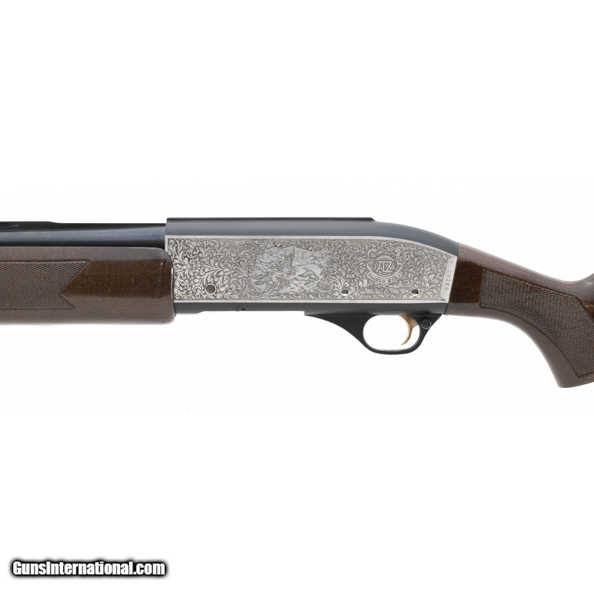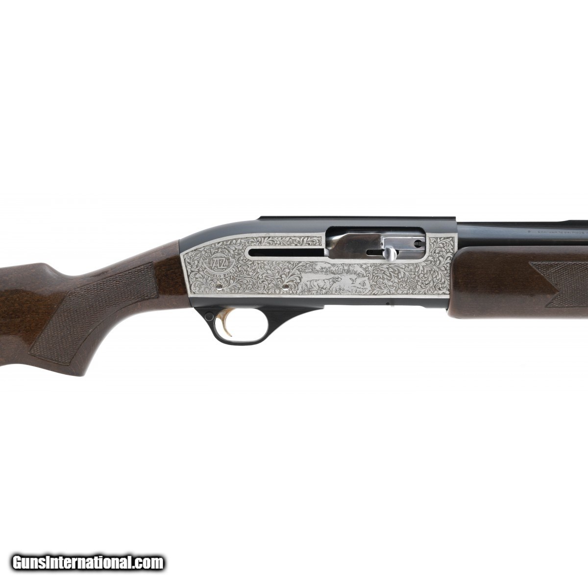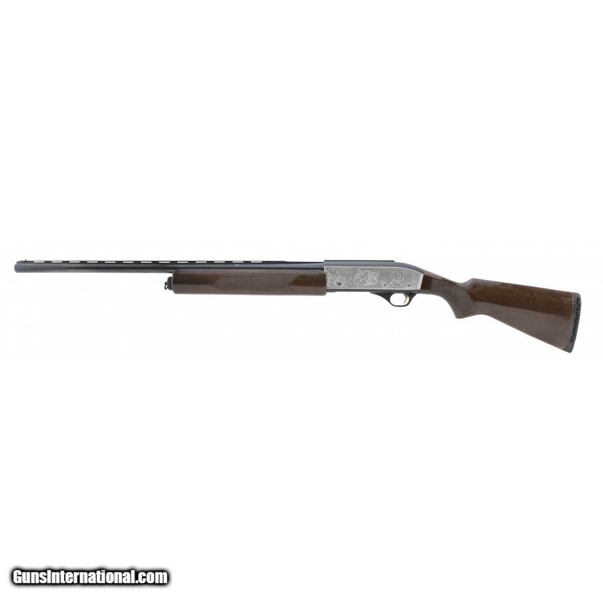 Italian made semi-auto field gun with 27"" barrel that accepts screw in chokes. Choke is full. Receiver is floral engraved with a dog chasing pheasants scene. Length of pull is 14"" with pad. Stock has crazing by butt pad and toe. Good overall condition.