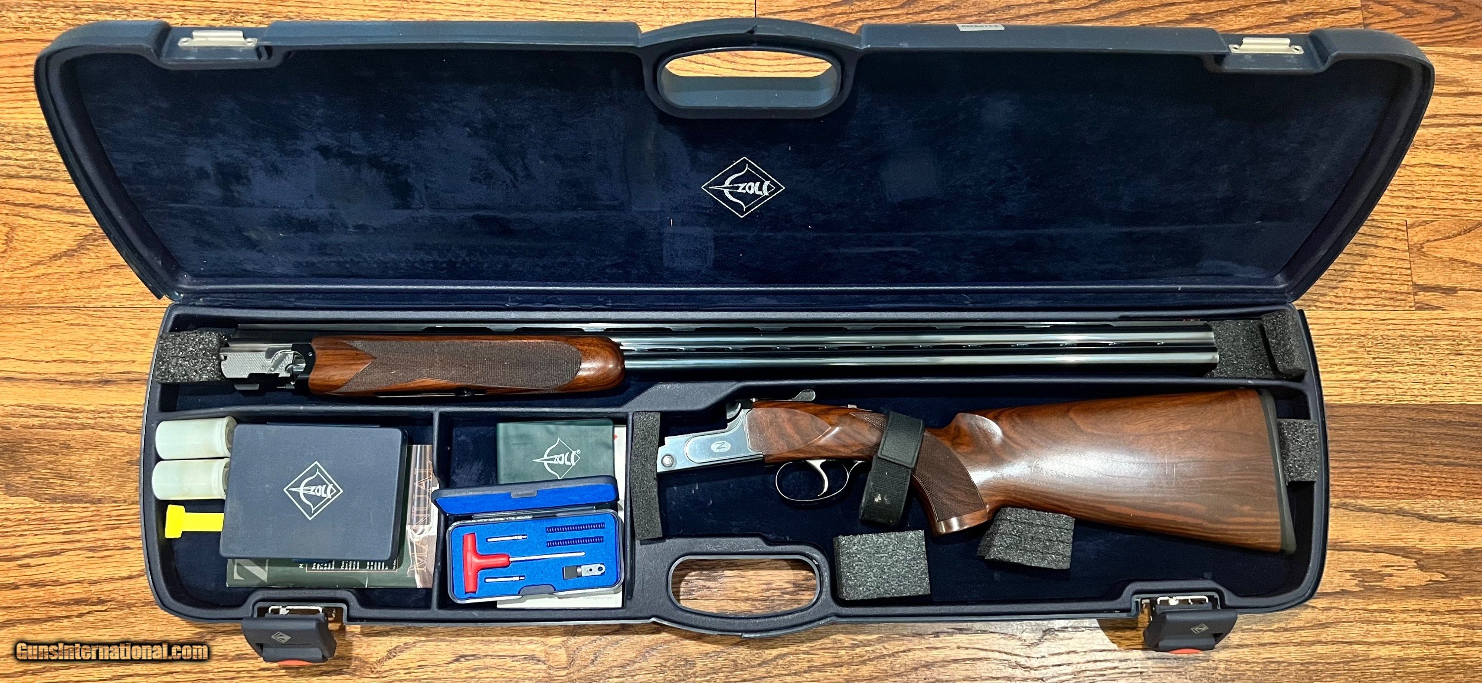 Description: Zoli Z-Sport 20GA 32" ejector barrels with matted vent rib Excellent bores Lockup tight as new Eight total flush chokes for lead/steel (CYLx2, ICx2, MODx2, IM, FULL) Bores: 15.9/15.9 LOP 14 1/2 over 1/2" zoli pad DAC 1 1/2 DAH 2 1/8 Cast off 1/8" Right hand palm swell 7lbs 7oz Dropout adjustable triggergroup Original Zoli Negrini case with all manuals, choke case, and spare parts case. Excellent almost new condition Zoli Z-sport clays/game gun with less than 100 rounds through it. SOLD Shotgun Gauge: 20 Gauge |
