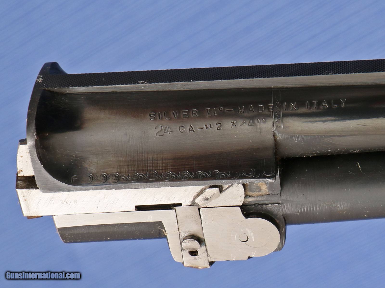 Description: 1989 - American Arms - Silver II - 24ga - 2-3/4", 26" IM / F (.013 / .020) Ejectors, Single Selective Trigger, LOP 14-3/8", Drop 1-1/2" to 2-3/8" Neutral Cast, Weight 6 lbs. 14 oz. Gun appears to be New and Unused. It doesn't say A. Zoli on the gun, but I'm about 99.44% sure that's the maker.