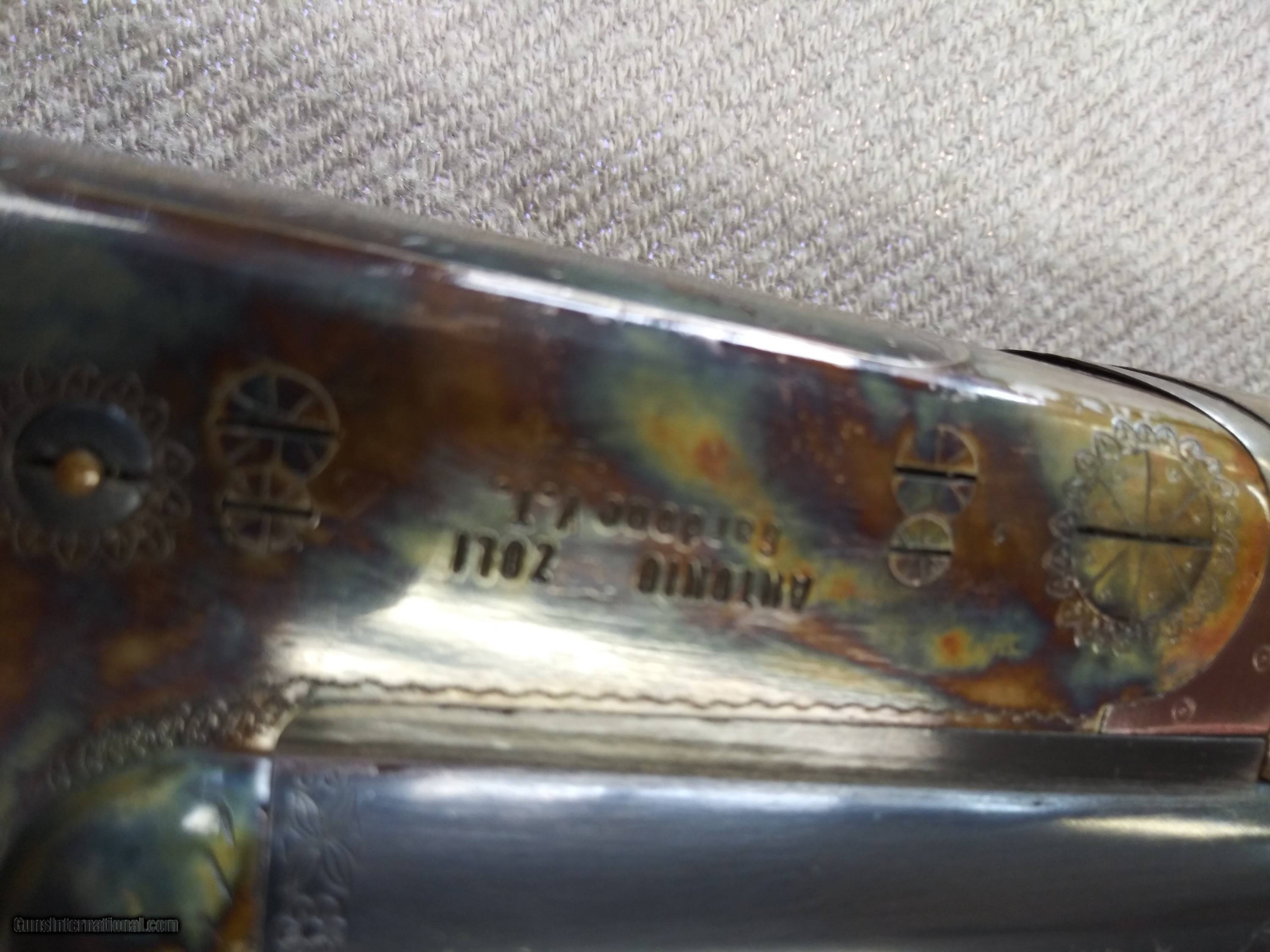 Description: Antonio Zolio side-by-side 20 gauge Magnum shotgun. 28 inch barrels, vent rib, single bead. Full/modified chokes. Non-ejector. Bores are in perfect condition. Overall excellent condition, as seen in pictures. $1650 includes shipping to FFL Only. Gold/Silver bullion also accepted as payment. E-MAIL PLEASE. SOLD Shotgun Gauge: 20 Gauge Manufacturer: A. ZOLI Serial Number: 48236 Barrel Length: 28 INCH |