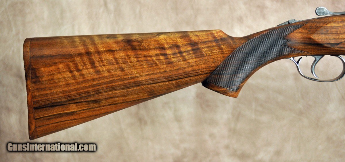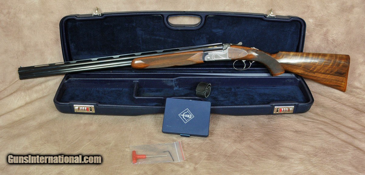 Description: Pre owned in excellent condition (two handling marks on the stock) 20 gauge Z oli Z Extra game gun. Features fine scroll engraving, 28″ factory C/T barrels (5) included. Ventilated rib, Woodward style field stock with checkered butt plate. Factory case included. SOLD |
