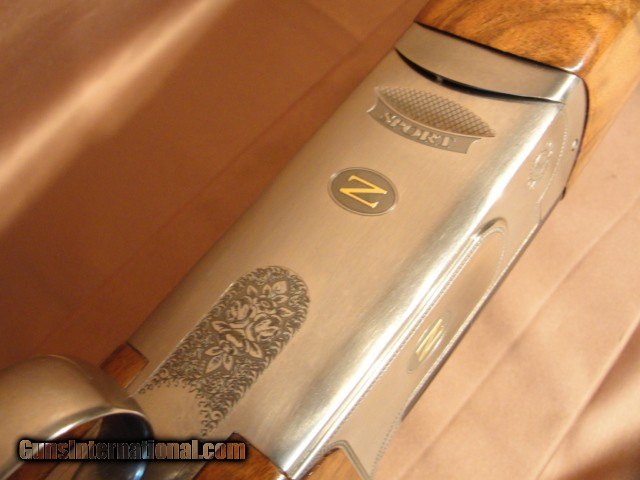 Description: Book #1099. Price: $6299.00 shipped to Lower 48. Factory description/specs: With the Z-Sport HR, aiming for the target becomes instinctive and focused from the very beginning. The HR model naturally leads your eyes to the target, offering a perfect view that translates into a significant reduction of discomfort for neck and shoulder. This model also boasts low recoil, due in part to the Boss-type lock which moves the gun’s central axis to an elevated position. Additional features include a new, 11 mm, adjustable tapered rib that thanks to a simple washer can adjust the impact point from 50/50 to 70/30. The standard stock is an off-set Monte Carlo, offering ideal pitch and a slightly rounded comb combined with an embossed pistol grip: a comfortable stock, ideal to make the most of the high rib. The action is engraved with a delicately ornate border, alongside the Z-Gun logo in relief on a non-glare stipple top, on both action sides and back.