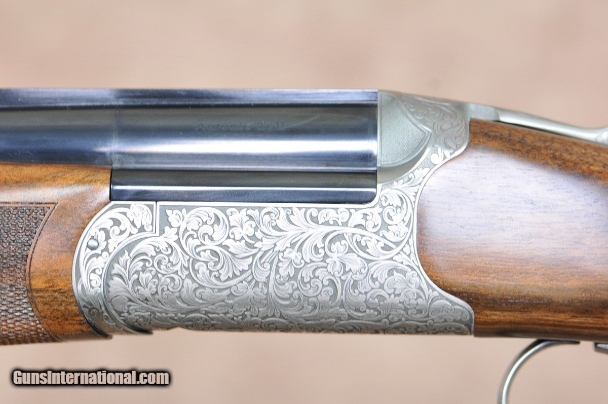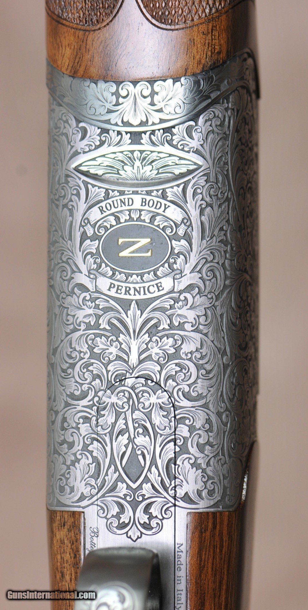 Description: New Arrival from Antonio Zoli!! Pernice 12 gauge game gun. Features round action 12 gauge receiver with elegant engraving and drop out select able trigger.29 1/2″ solid game rib with factory chokes (5). Highly figured Woodward game stock and factory case- SOLD |