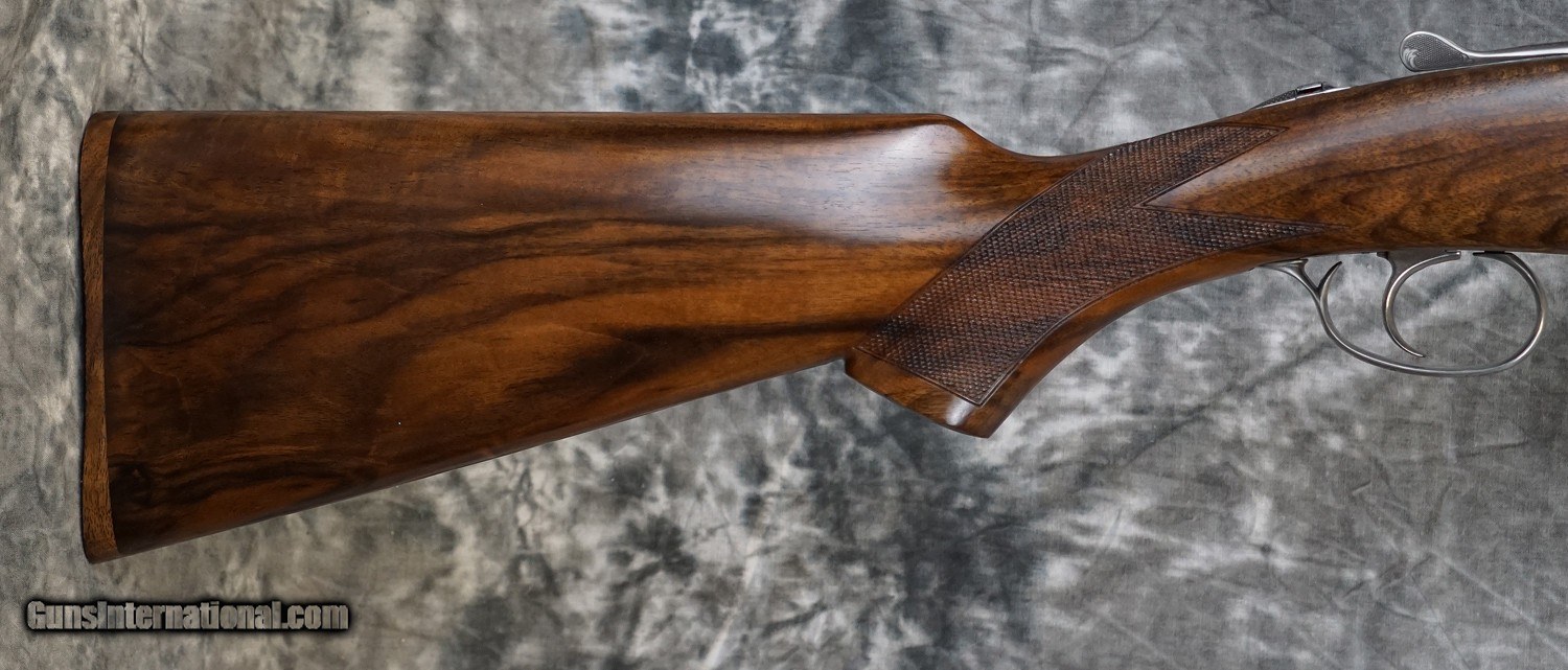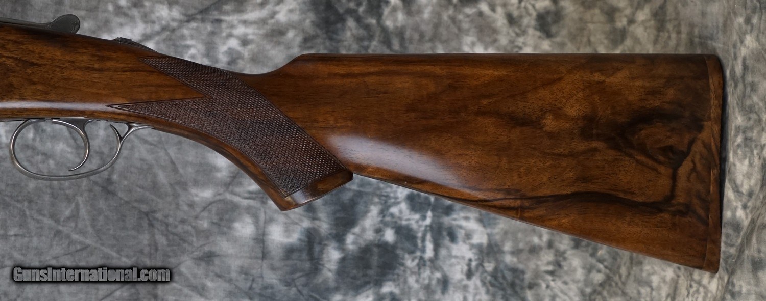 Description: New Zoli Pernice Round Body Game 12GA with 29 1/2" factory choke tubed barrels with filed game rib. Coin finished round-body receiver with full coverage scroll engraving. Outstanding Purdey style pistol grip game stock to removable wooden butt-plate; fully checkered round forearm. Includes factory case, chokes and tools. Call 626-633-1002 for pricing. SOLD Shotgun Gauge: 12 Gauge |