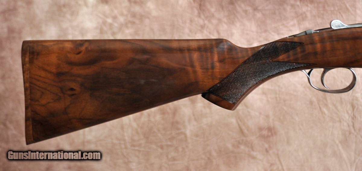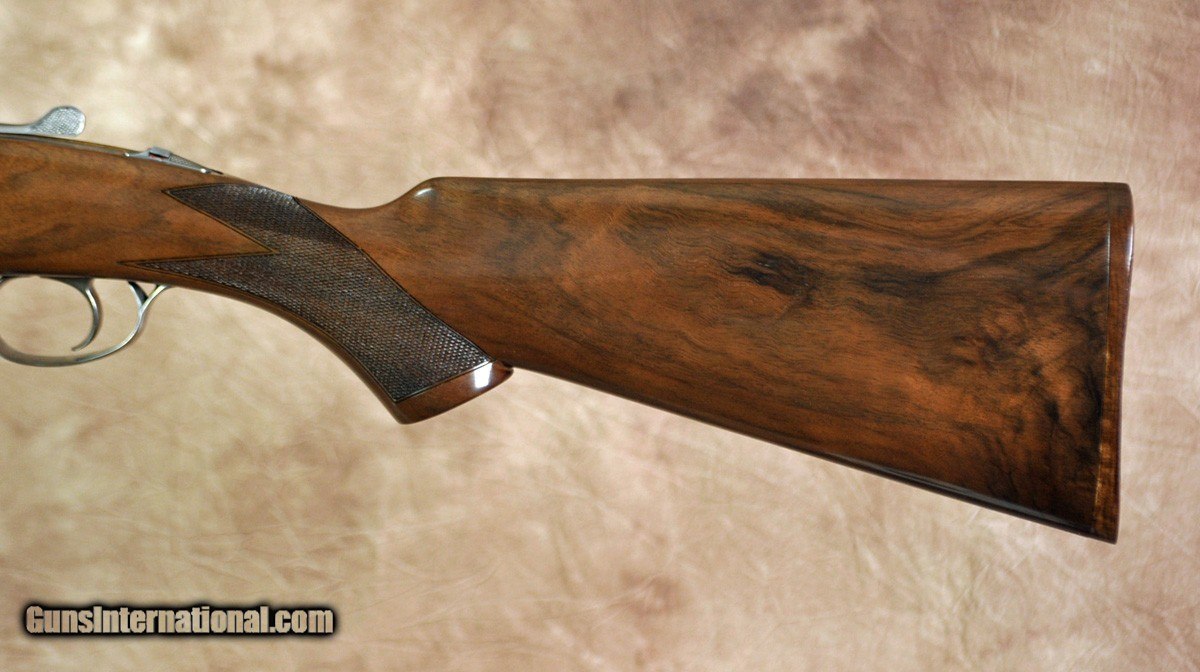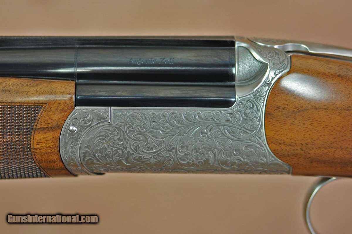 Description: New Zoli Pernice Round Body Field 20ga. Features factory flush choke tube 28" barrels with thin, solid game rib. Round body receiver with scroll engraving pattern engraved by Italian Master engraves at Bottega Giovanelli and removable, adjustable trigger. Highly figured right hand Purdey style grip stock with wood checked buttplate and round forend. Comes in factory case. SOLD Shotgun Gauge: 20 Gauge |