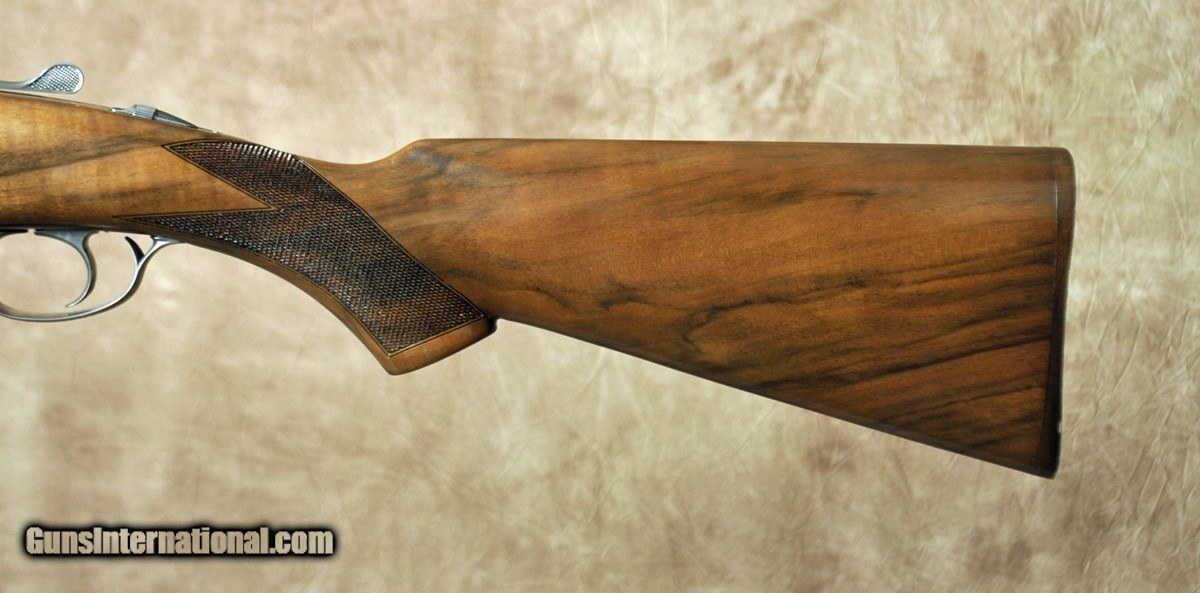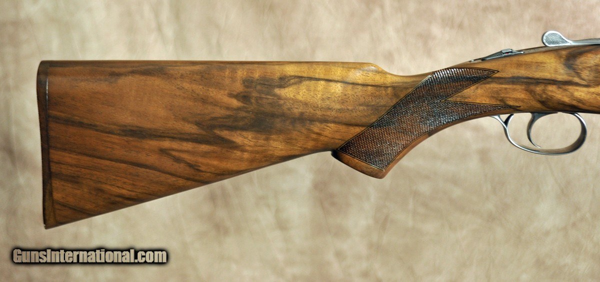 Description: New Zoli Pernice Round Body Field 20ga. Features factory flush choke tube 29 1/2" barrels with thin, solid game rib. Round body receiver with scroll engraving pattern engraved by Italian Master engraves at Bottega Giovanelli and removable, adjustable trigger. Highly figured right hand Purdey style grip stock with wood checked buttplate and round forend. Comes in factory case. SOLD Shotgun Gauge: 20 Gauge |