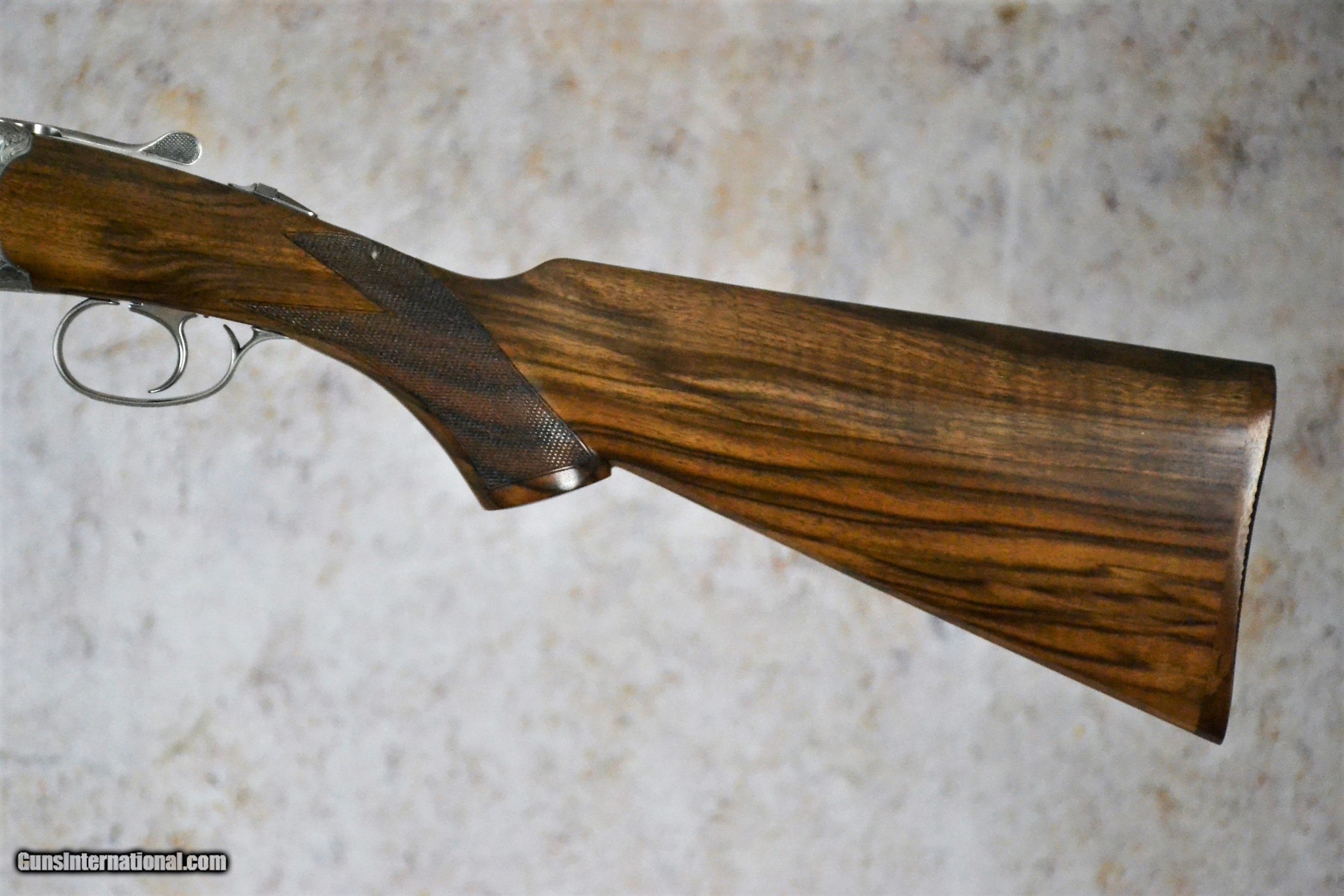 Description: Zoli RB Pernice Field 20g 30" SN:#253114 A True Round Body Upland Game Gun The Zoli Pernice reflects the classic tradition of game guns, with exquisite scroll engraving – totally finished by hand and signed by the famous Bottega incisioni. Uniquely, the Pernice is a true round body model, with a fully rounded frame, machined from a monolithic forged steel alloy with a Zoli removable trigger group. All trigger parts are titanium nitrate treated for maximum corrosion resistance, while main springs are coated with a self-lubricating material to preserve their strength over time. As standard with Zoli guns, the Pernice features silver soldered barrels and is equipped with a top solid Churchill rib. The stock is crafted from a fine Turkish Walnut with fine hand checkering and is hand finished in a luxe oil. Pernice Engraving The engraving creation for the Pernice, a true round body Boss action over and under shotgun, was born from a collaboration between Zoli and Bottega Incisioni, the world renowned engraving studio with a 60-year history of engraving the finest guns in existence. Bottega Incisioni has earned international acclaim for their exquisitely unique designs and ability. Each Pernice action is signed "Bottega Incisioni" as a mark of authenticity. The new Zoli Pernice presented unique challenges for the engraving design as it is the first Boss style action to be truly rounded on all 4 sides in a flowing synchronous form. There are no flat sides. The action seems to growanically from the long, slender barrels rearward into the graceful lines Prince of Wales stock. It looks and handles like a strong and graceful arm extended to the horizon. The engraving pattern required a unique approach so as to enhance the natural flow of the action body. Bottega Incisioni created an exceptional design which enhances the slender rounded features and allows the layout to be done mechanically, thus giving the hand engravers plenty of time to apply liberal use by hand of the hammer and chisel. The design uses low relief, high contrast scroll created from intertwined Acanthus Spinosus leaves – a leaf with deep veins. Acanthus scroll is often found in Grecian architecture (and the English countryside). Its floral motives draw the eye to the flowing lines of the Pernice. The carved surface of the low relief engraving on the Pernice is deeply hand shaded to enhance contrast and color.The leaves are shaded to create volume and flow. The artist’s vision allowed the engraving of the leaves to flow like vines and be the living connection intertwining the barrels through the rounded action and growing into the stock. Federal firearms laws do not allow us to ship firearms directly to you. Please contact us for ordering and shipping information. Gauge: 20g Barrel Weight: 2lb 13oz Barrel Length: 30" Chamber: 3" Bore Diameter: 15.0 Chokes: 5 Flush Zoli Chokes Rib: Tapered Solid Rib Stock Dimensions Drop at nose: 1 3/8" Drop at heel: 2 1/4" Cast Off: 1/8 RH Forend Style: English Sporting Length of pull: 14 3/4" to Wood Butt Comb: Fixed Weight: 6lb 7oz Warranty: 10 Years SOLD |